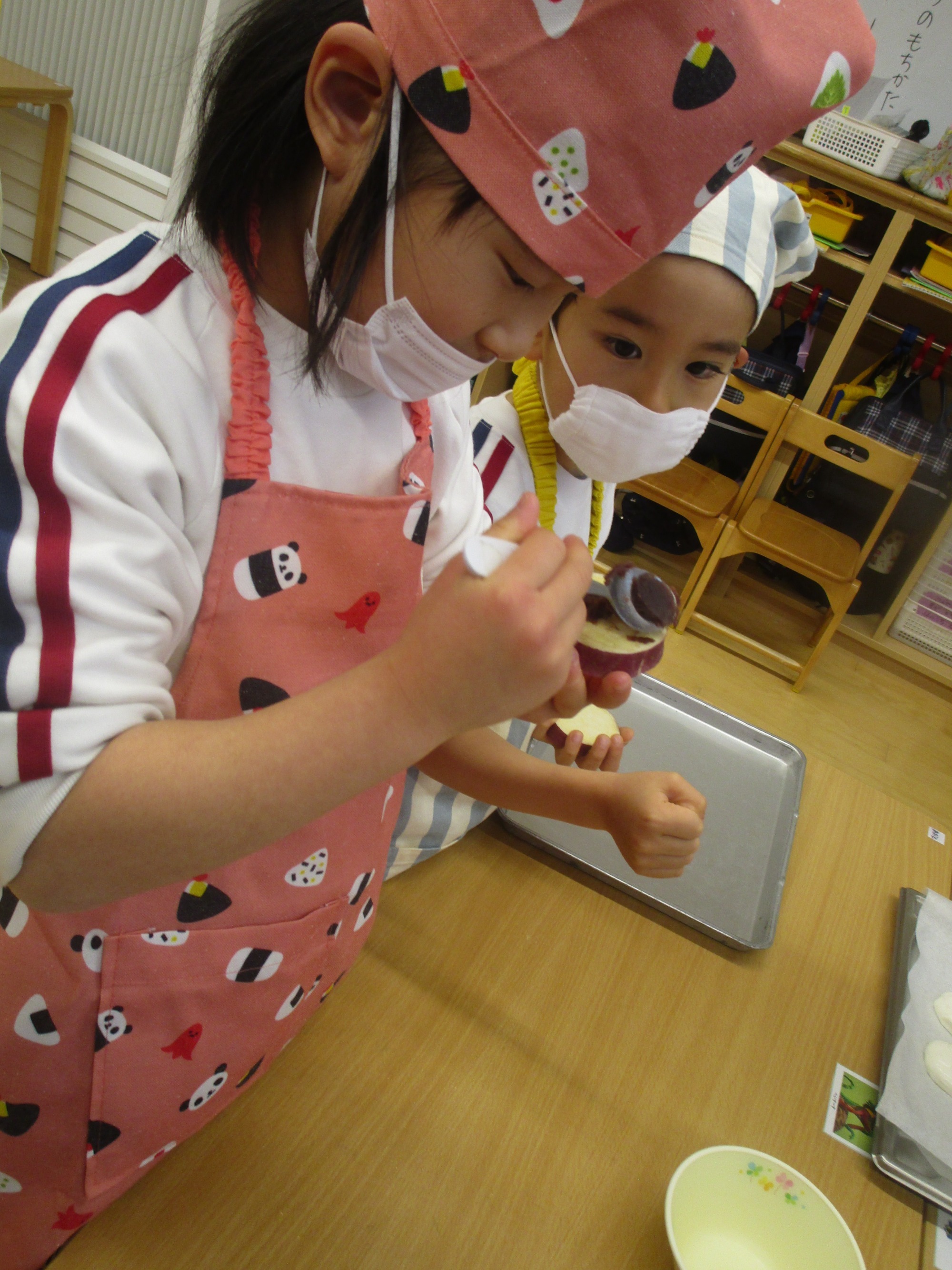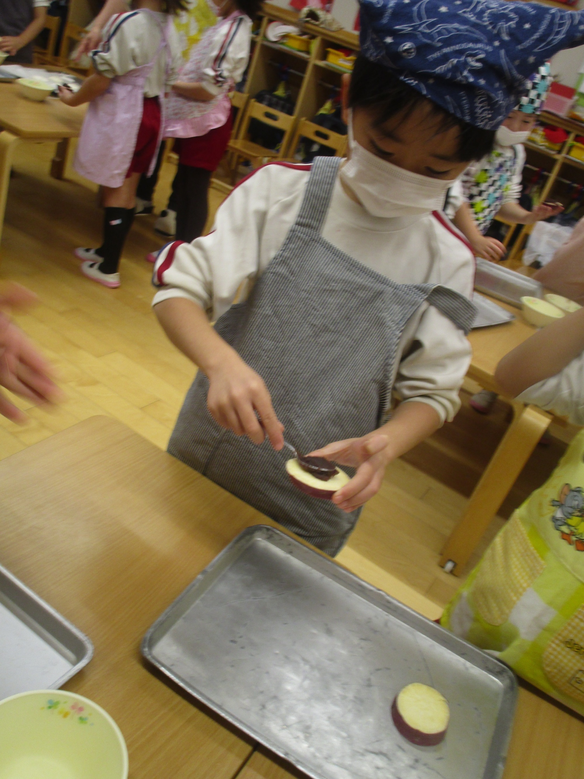 おやつの時間に、みんなで「おいしい~」「さつまいもがあまいね」と、嬉しそうに食べる姿が見られました♪
