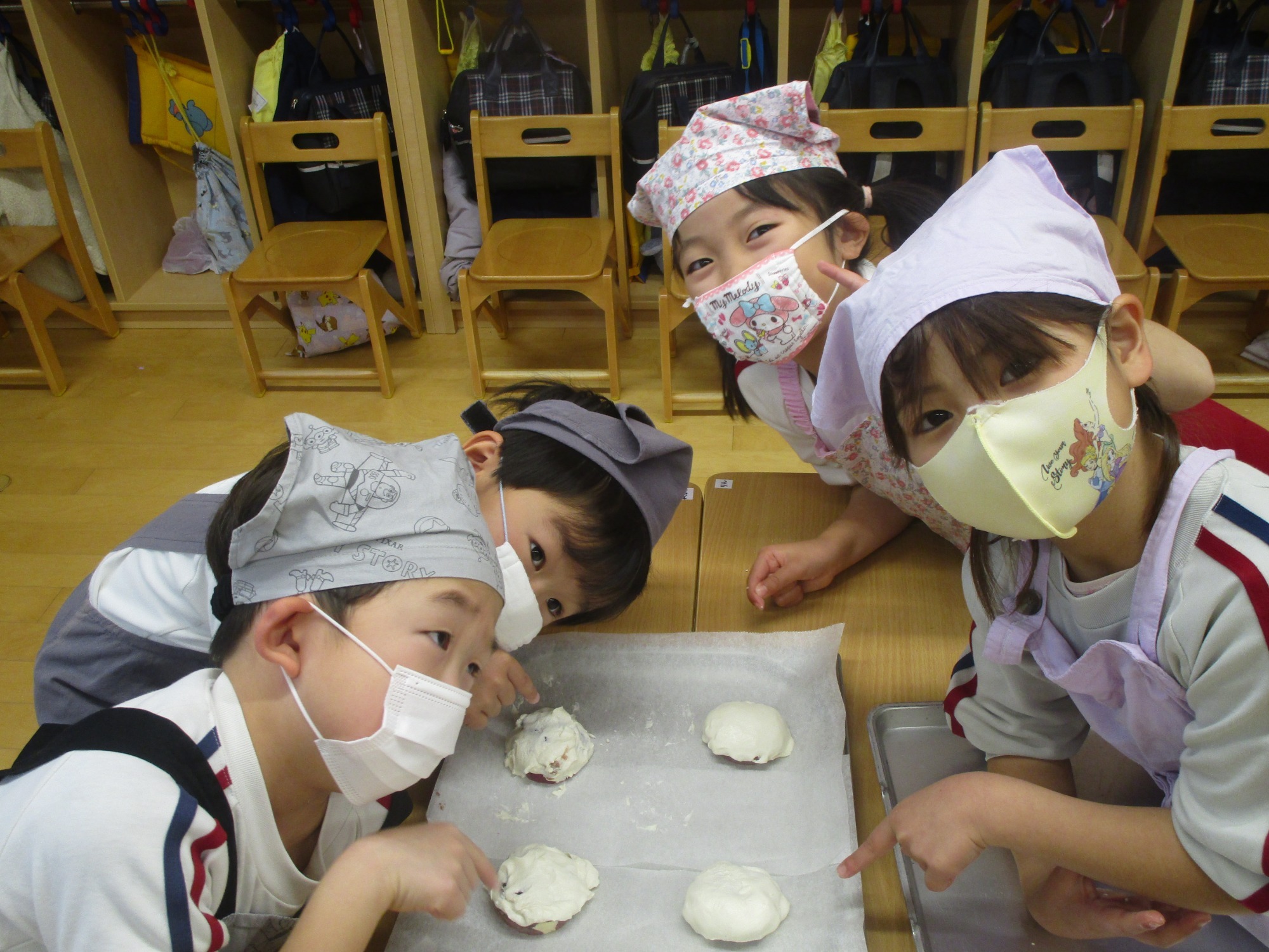 「ふわふわにふくらんでる!」「おいしいね」「あまいね」と、嬉しそうに食べました!