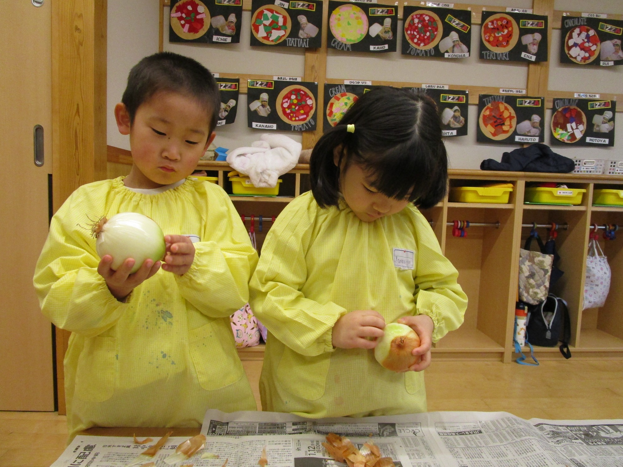 今日は、ほし組さんに「玉ねぎの皮むき」クッキングです。