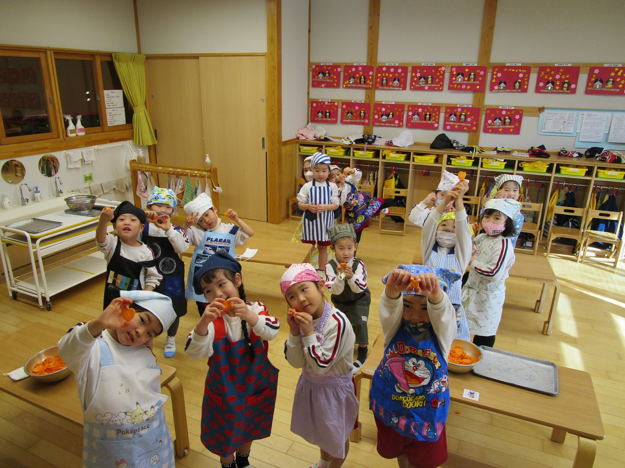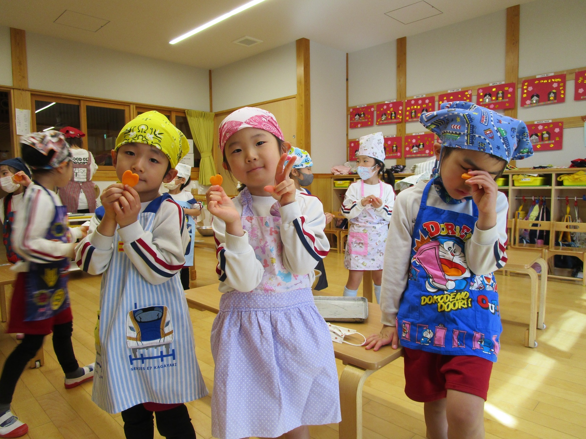 と、みんなニコニコで人参の型抜きをしました。