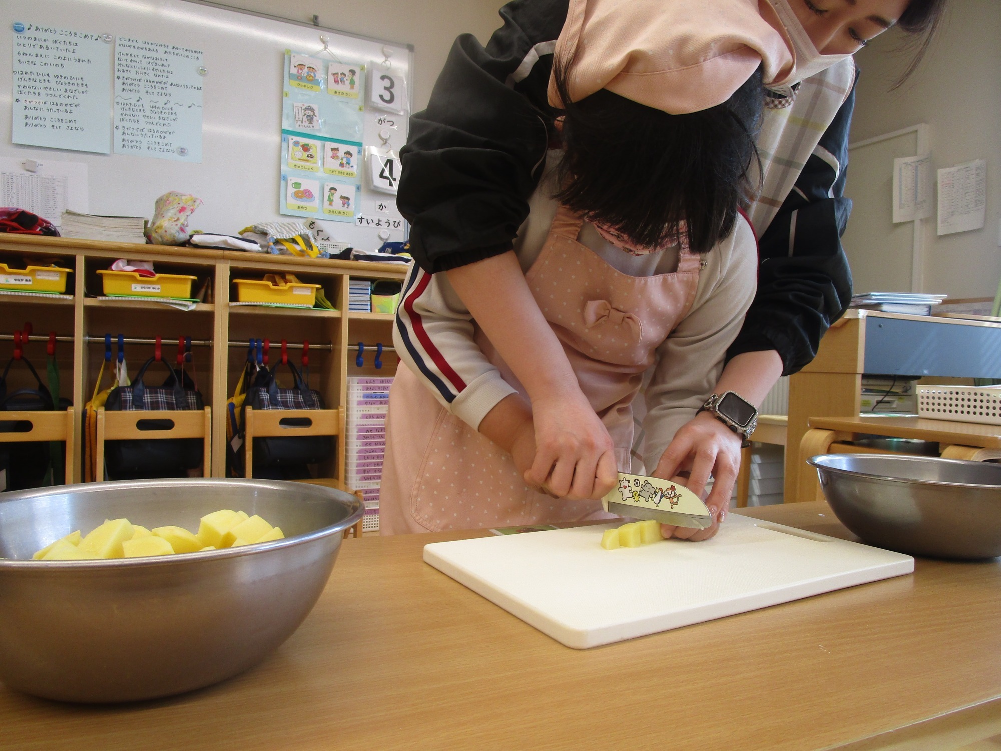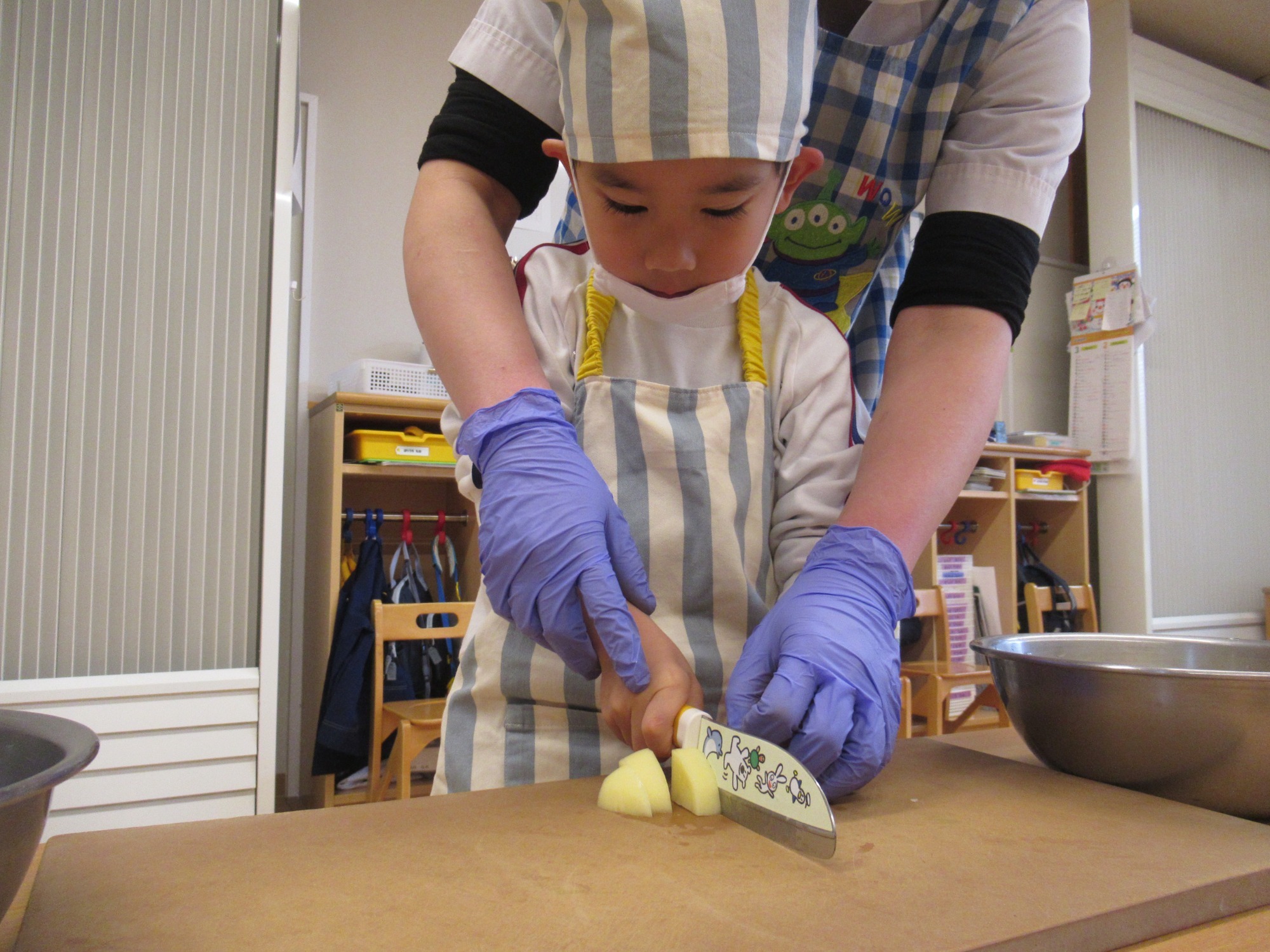 と、ドキドキしながら慎重に包丁を使ってじゃが芋を切ることが出来ました♪