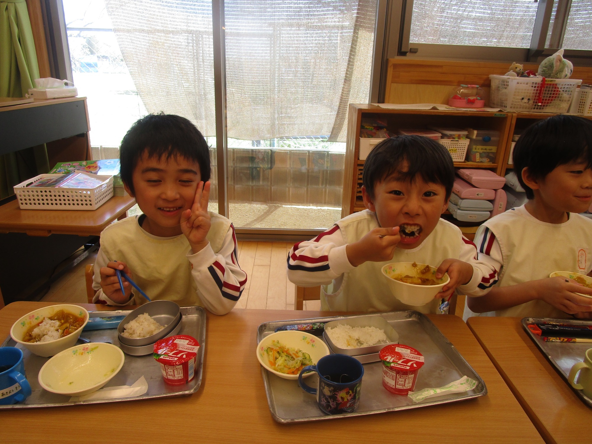 給食の時間には、みんなよく噛んで食べることが出来ていました。