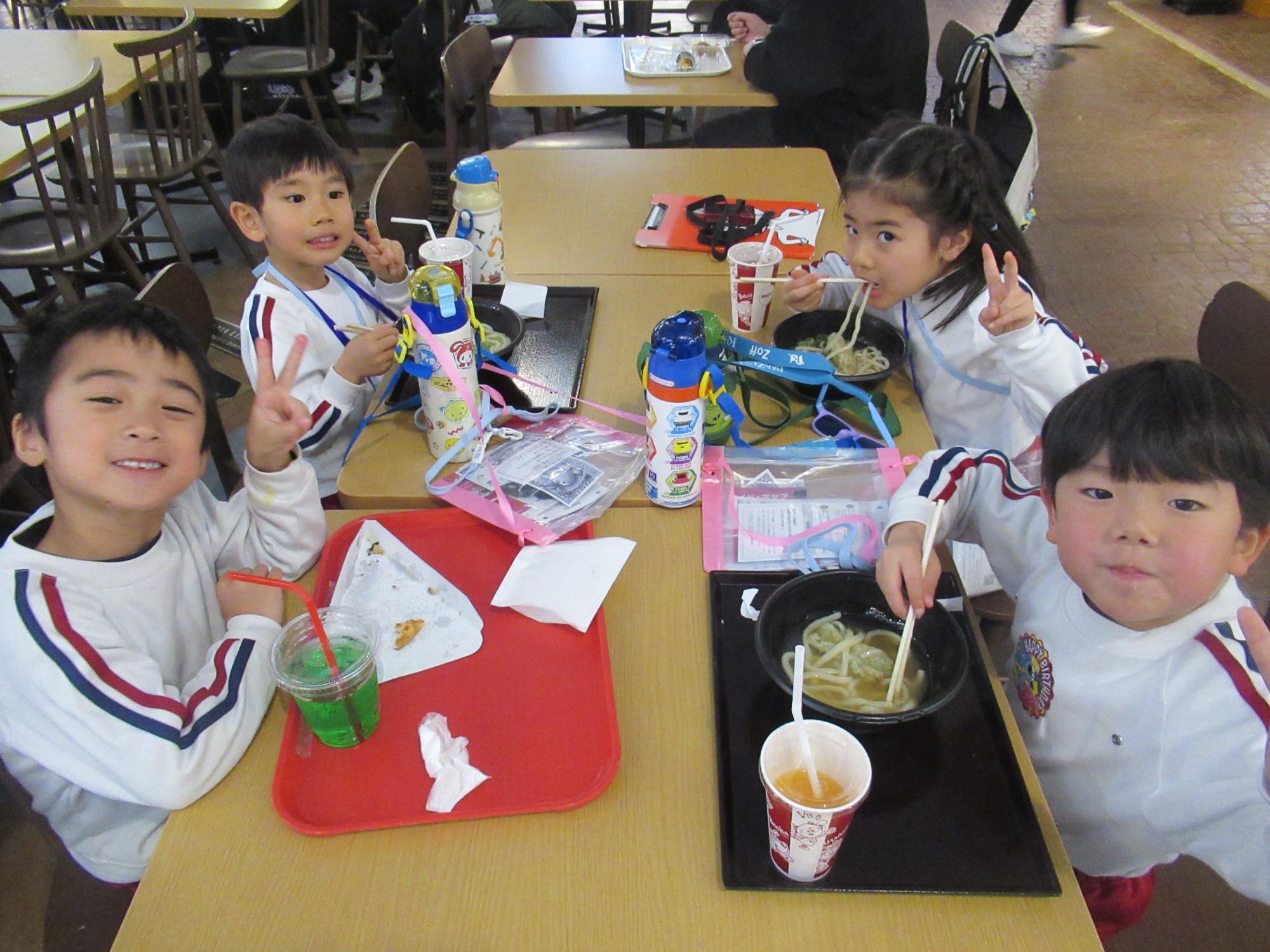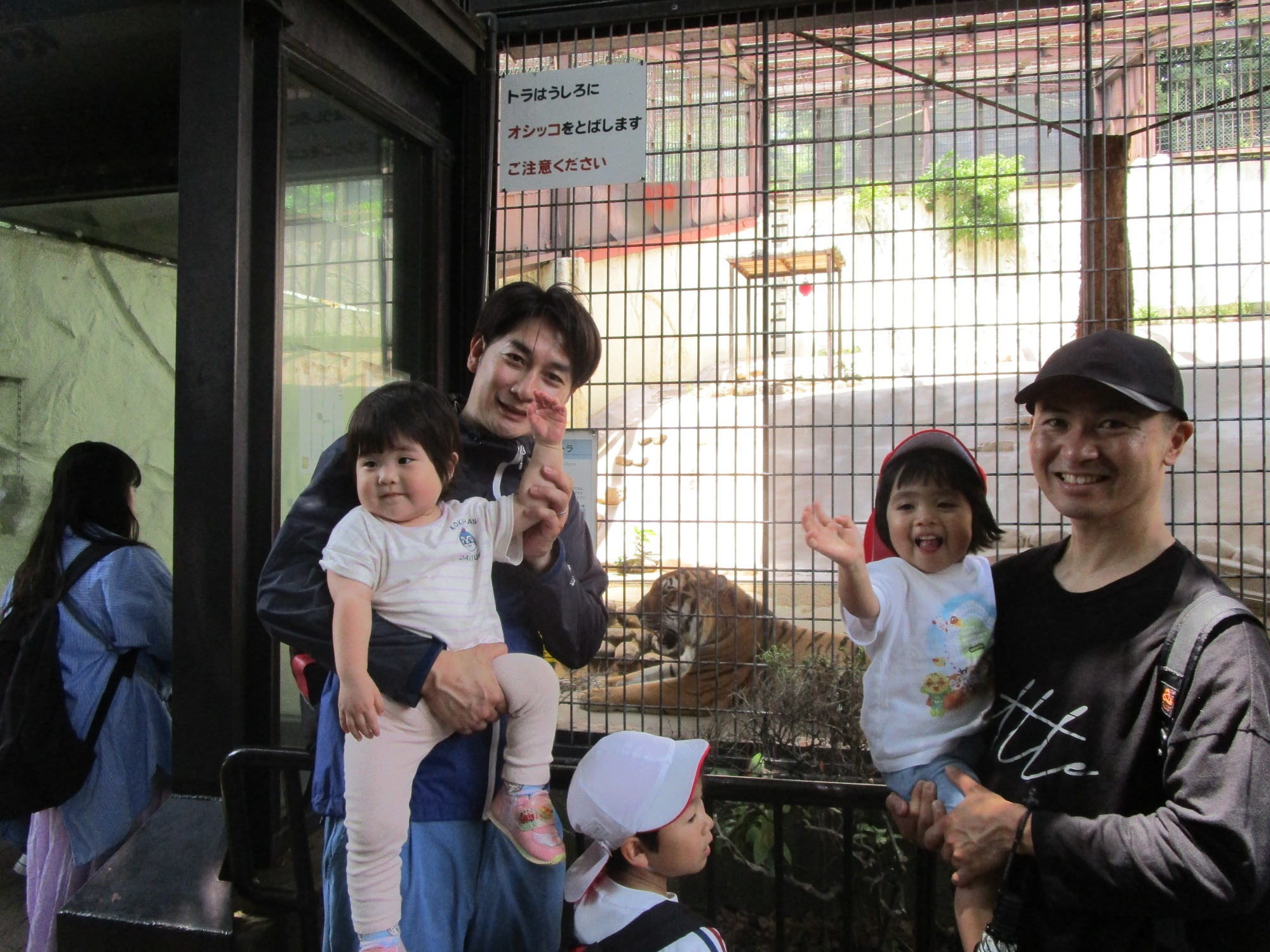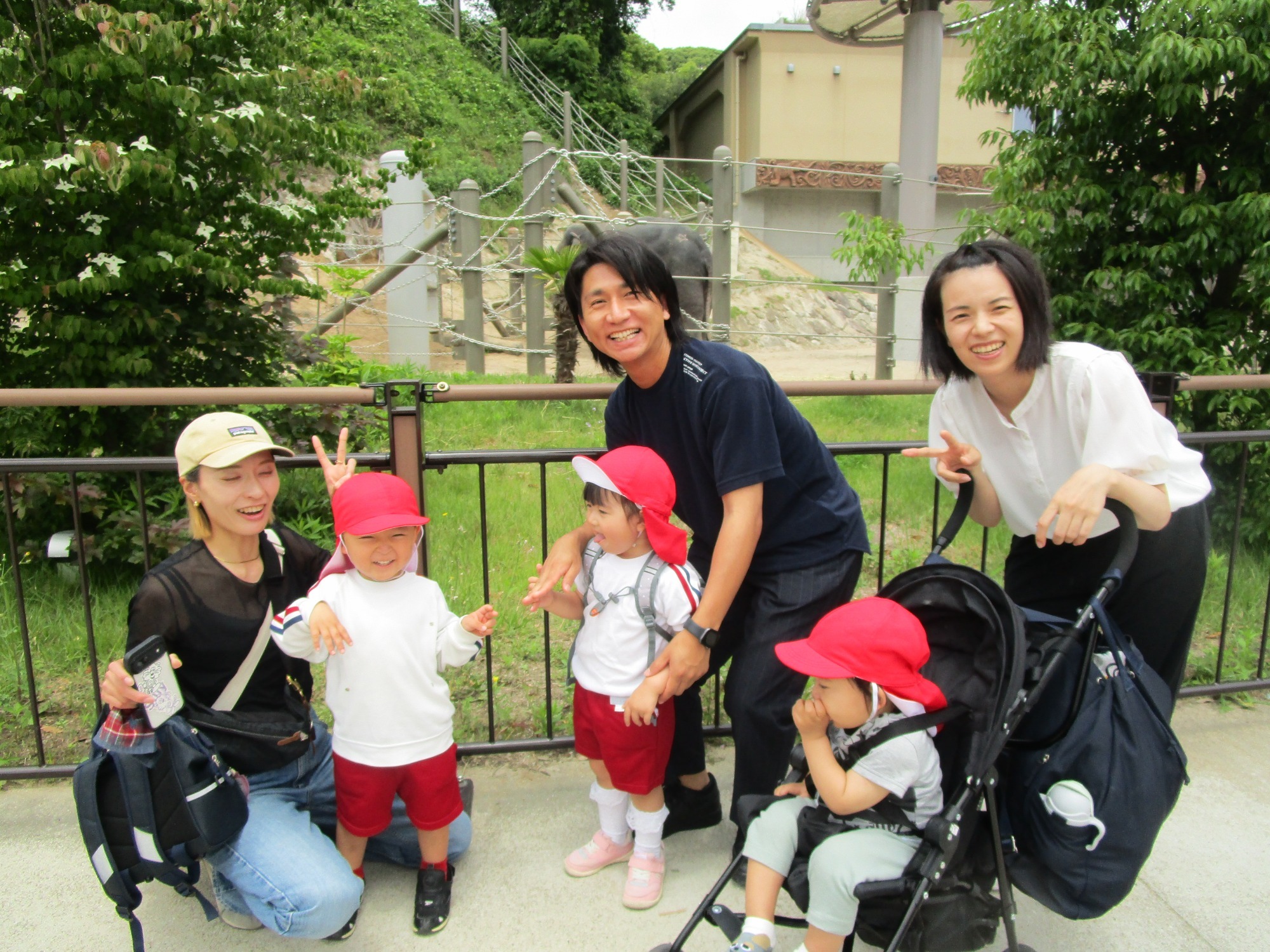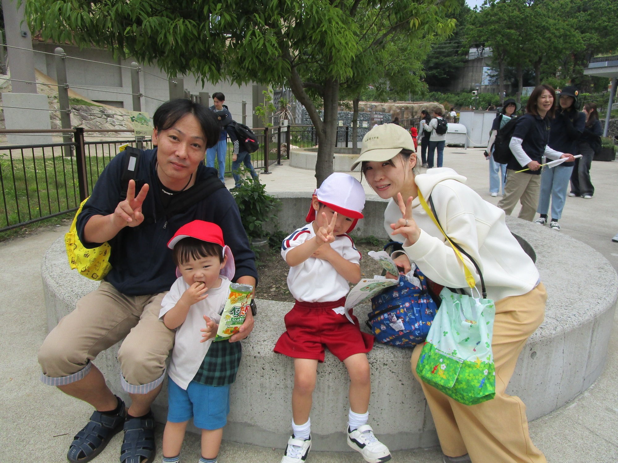 今回は親子でのバス遠足。バスの中からワクワクが止まらず、「どんな動物がいるかな?」と親子で会話が弾んでいました。ライオンやキリン、ゾウやペンギンなどたくさんの動物たちを見て、子どもたちの目はキラキラ!お家の方とよーく観察したり、写真を撮ったりする姿があちこちで見られました。おいしいお弁当を食べたり、お友だちと手をつないで歩いたり親子で楽しい思い出がたくさんできた一日になりました♪