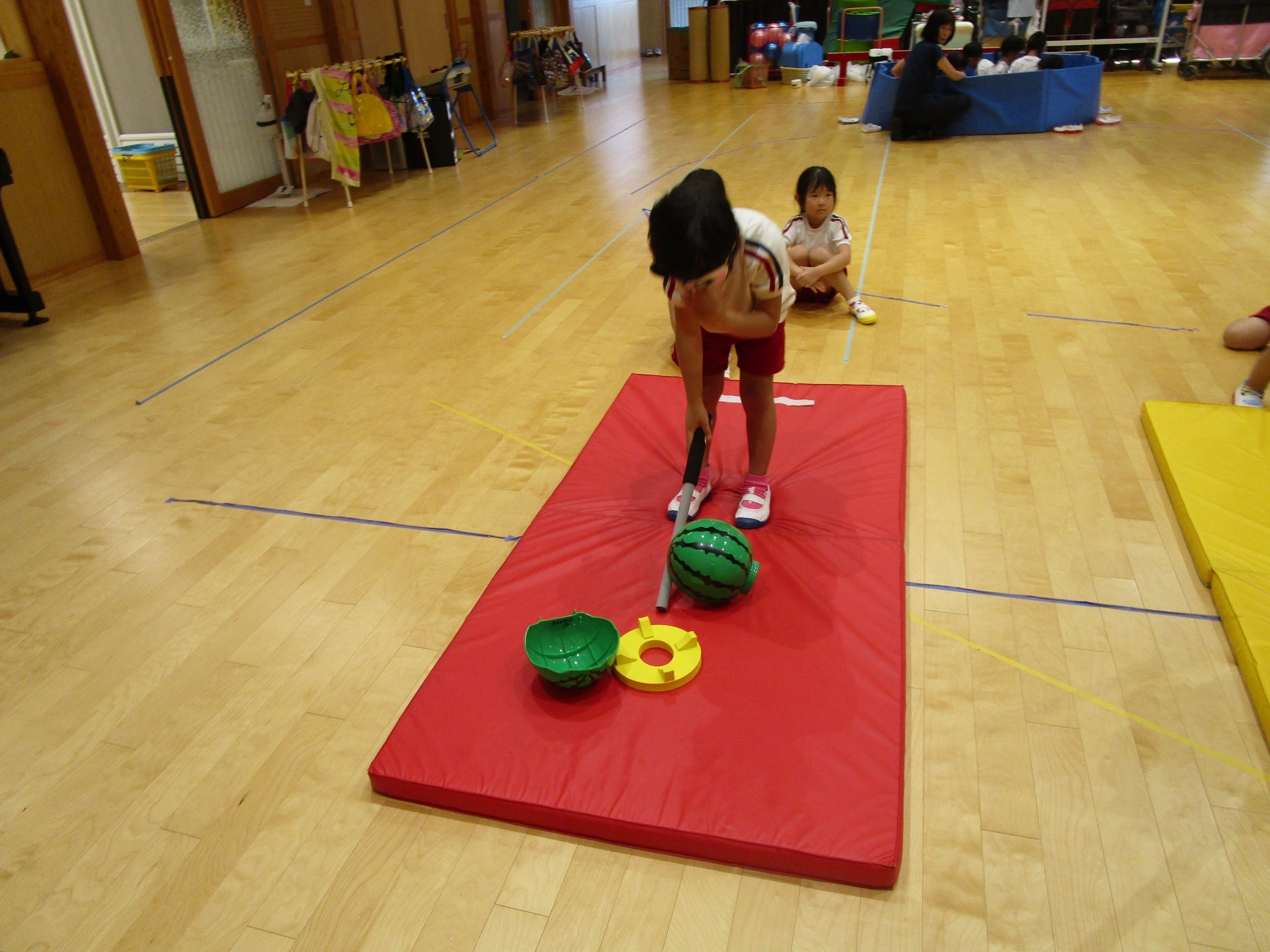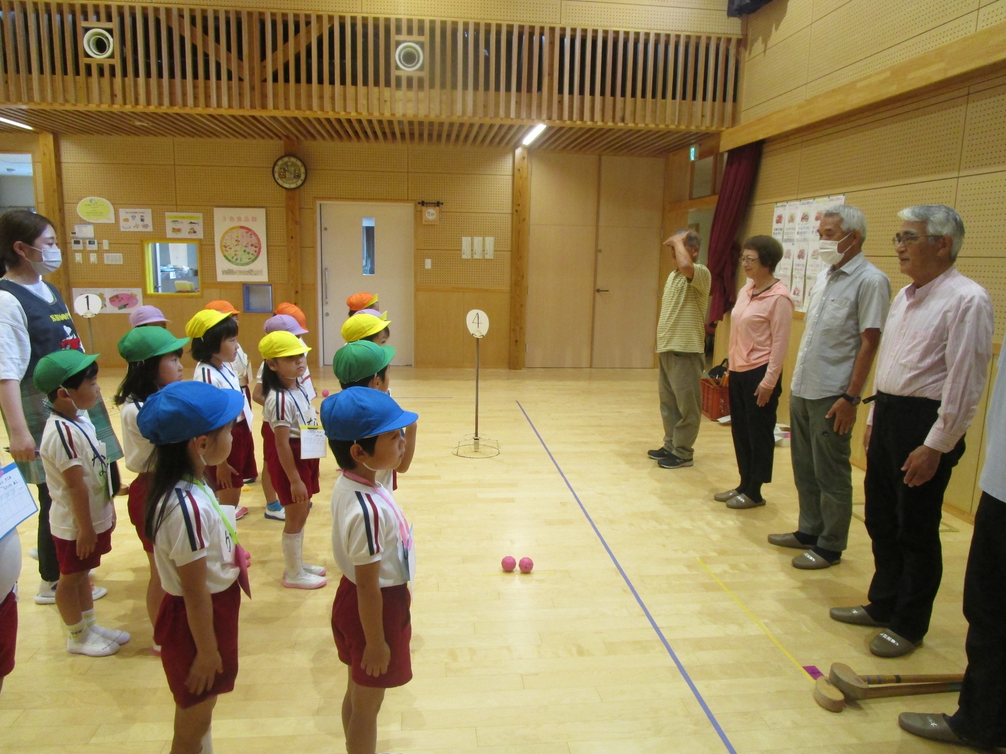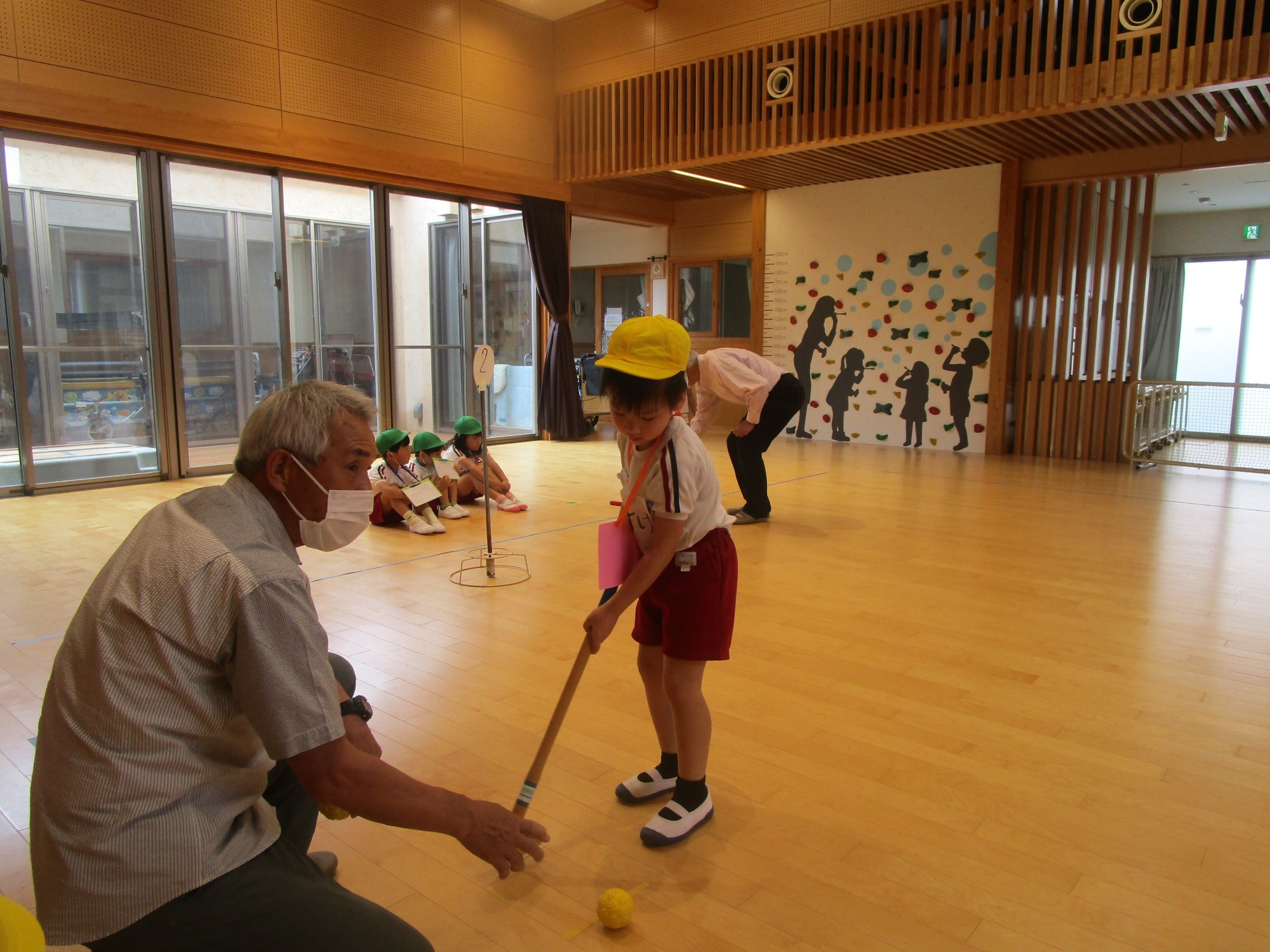 地域の方にクラブの持ち方や打ち方などを最初に教えて頂きました。5つのコースを順番に回っていきスコアをつけていきました。回数を重ねるごとにコツを掴む子どもたち。ホールインワンを達成する子どもも何人もいてとても盛り上がりました。初めてグランドゴルフを体験した子どもたちは楽しさのあまりにこのクラブ保育園にもほしいな~とつぶやいていましたよ😊