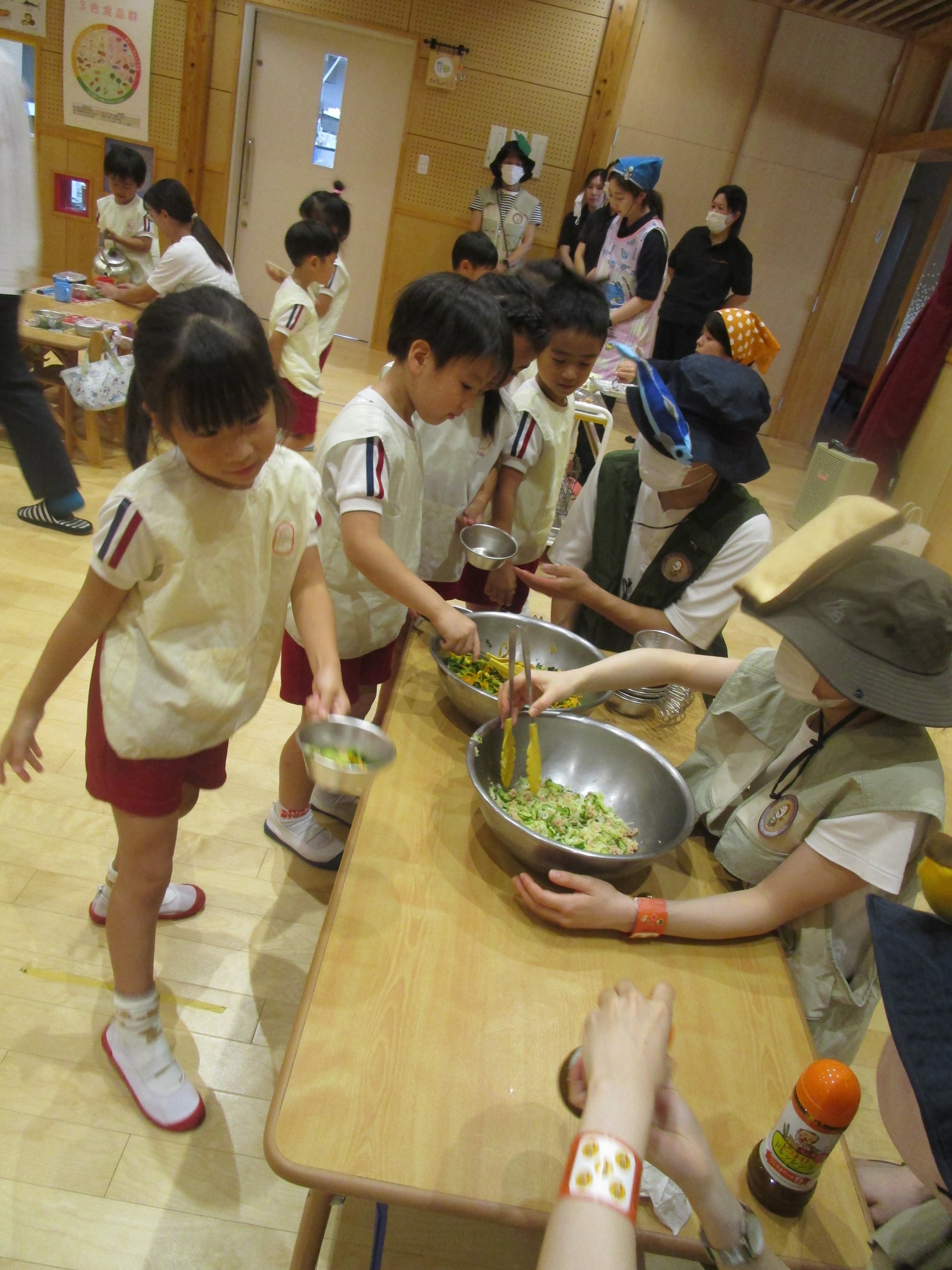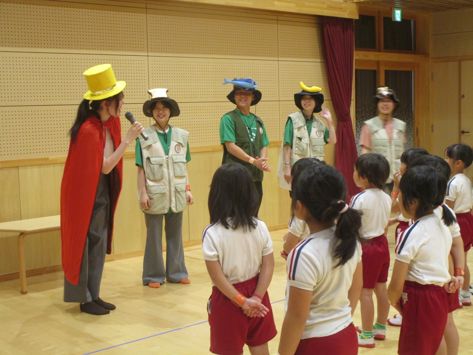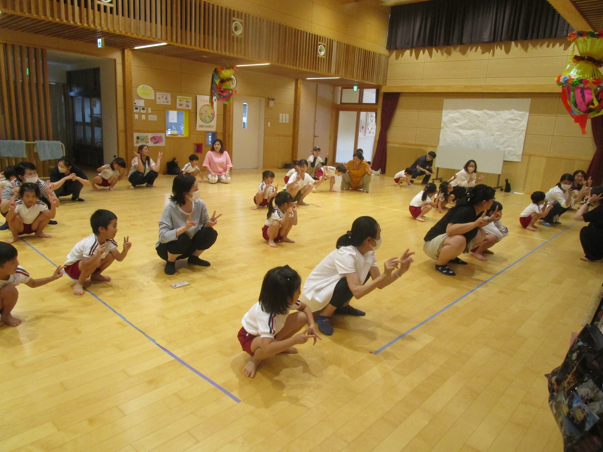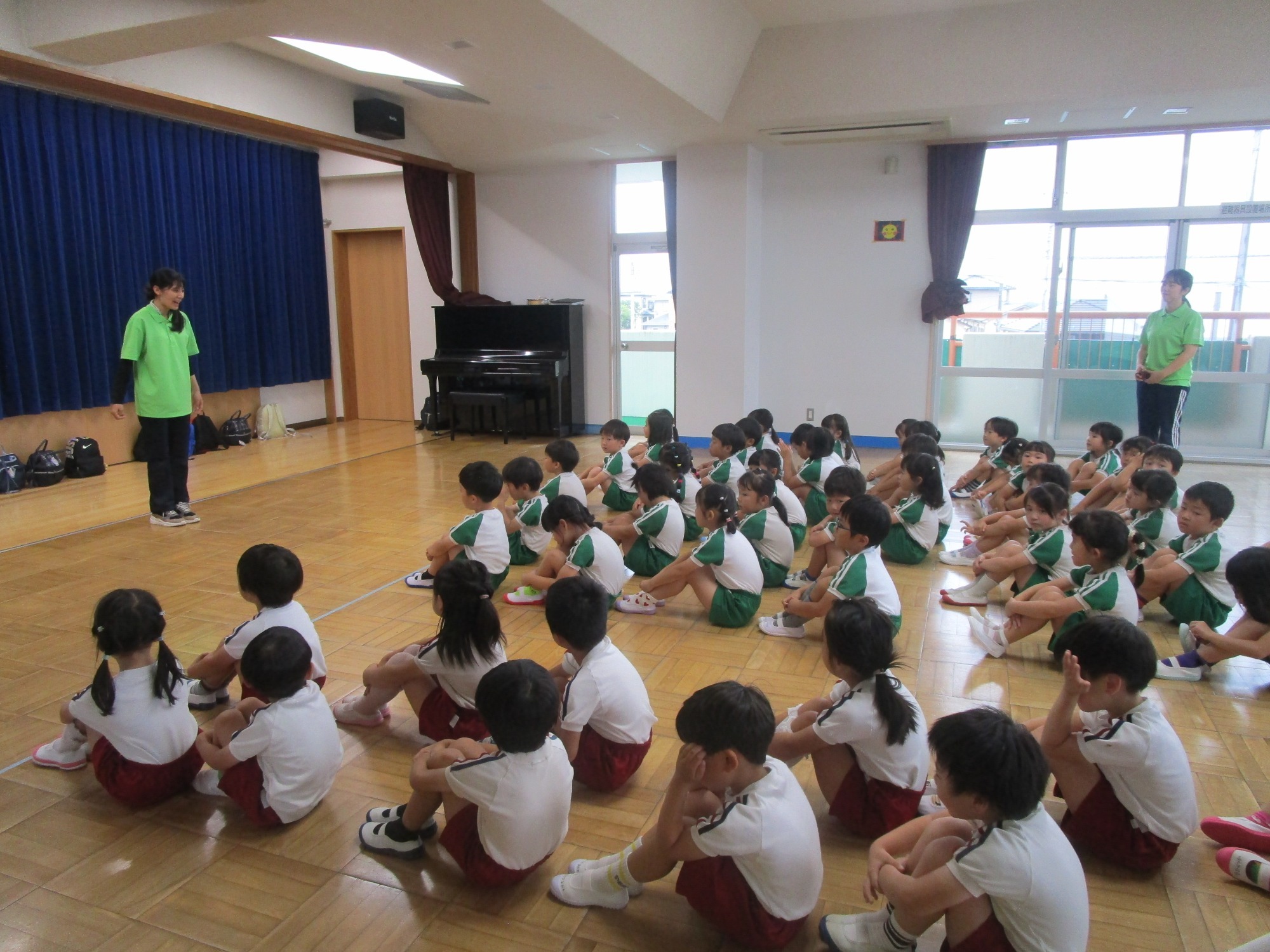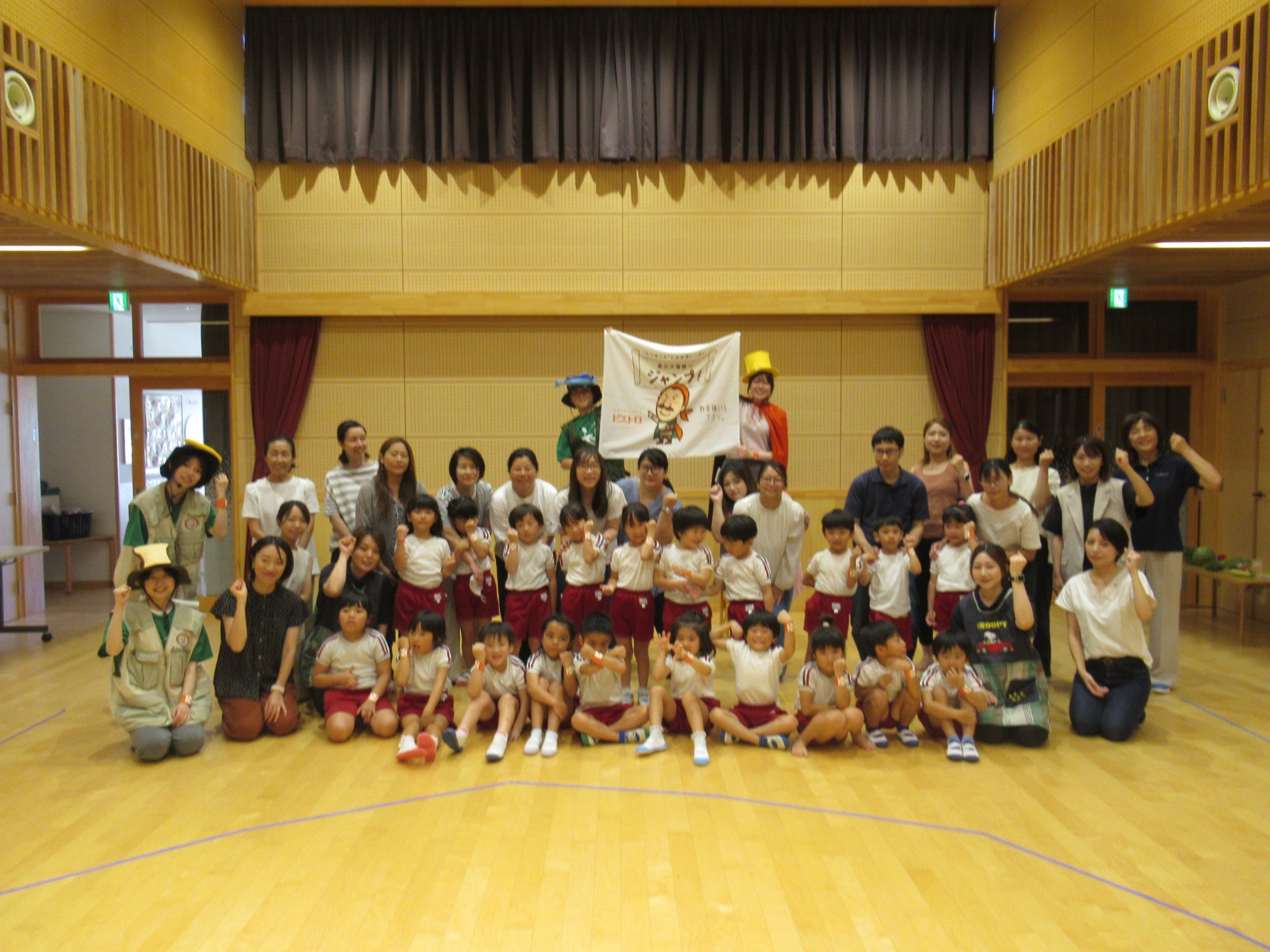 大堰保育園に小学生のお話ボランティア「サマーキッズ」のお兄さん、お姉さんたちが来てくれました。絵本の読み聞かせや手遊び、紙芝居をしてもらいました。子どもたちはワクワクしながら参加しました。優しい声で読まれる絵本に子どもたちは目を輝かせて夢中で聞き入っていました。サマーキッズの皆さん、素敵な時間をありがとうございました。
