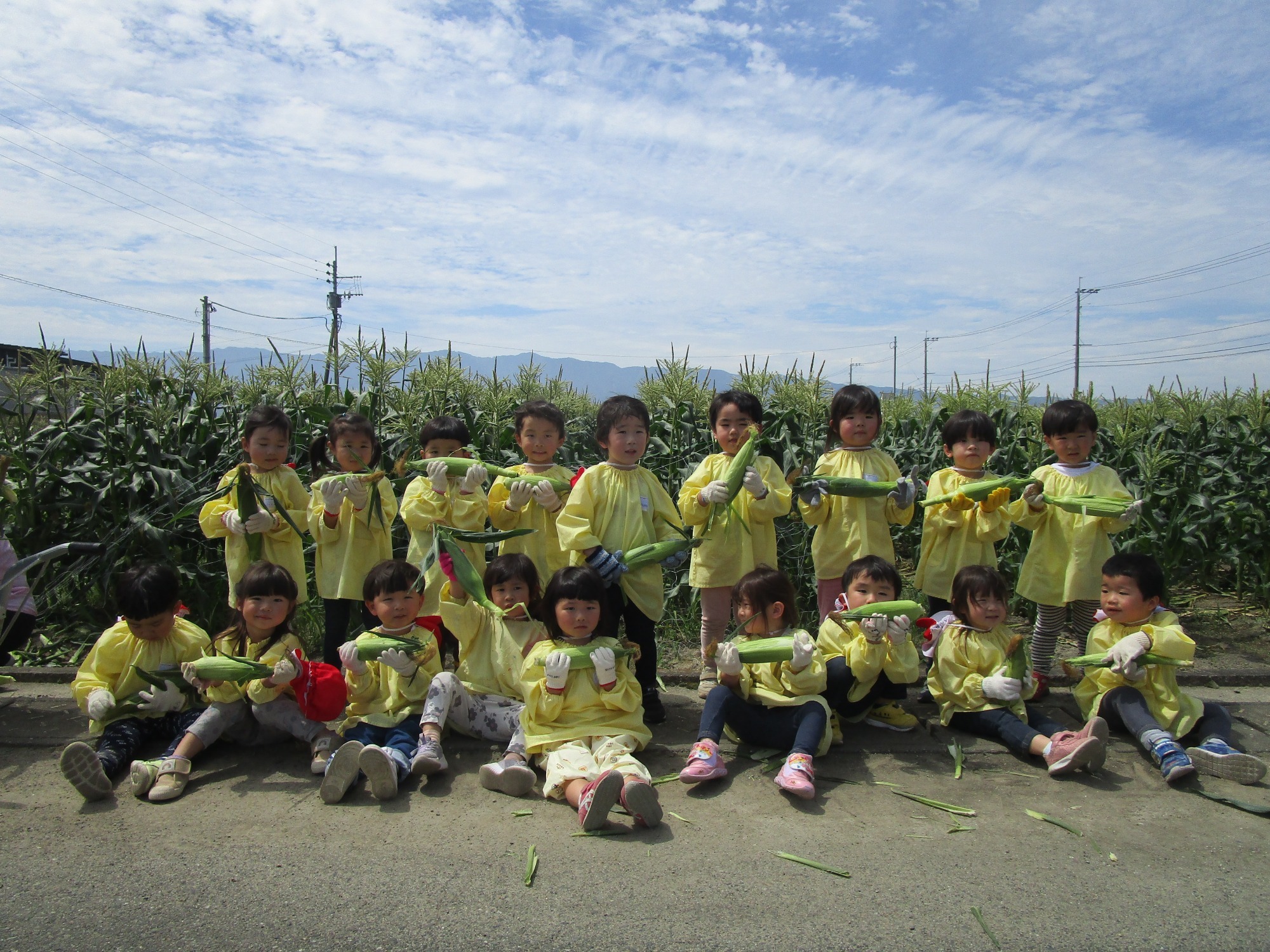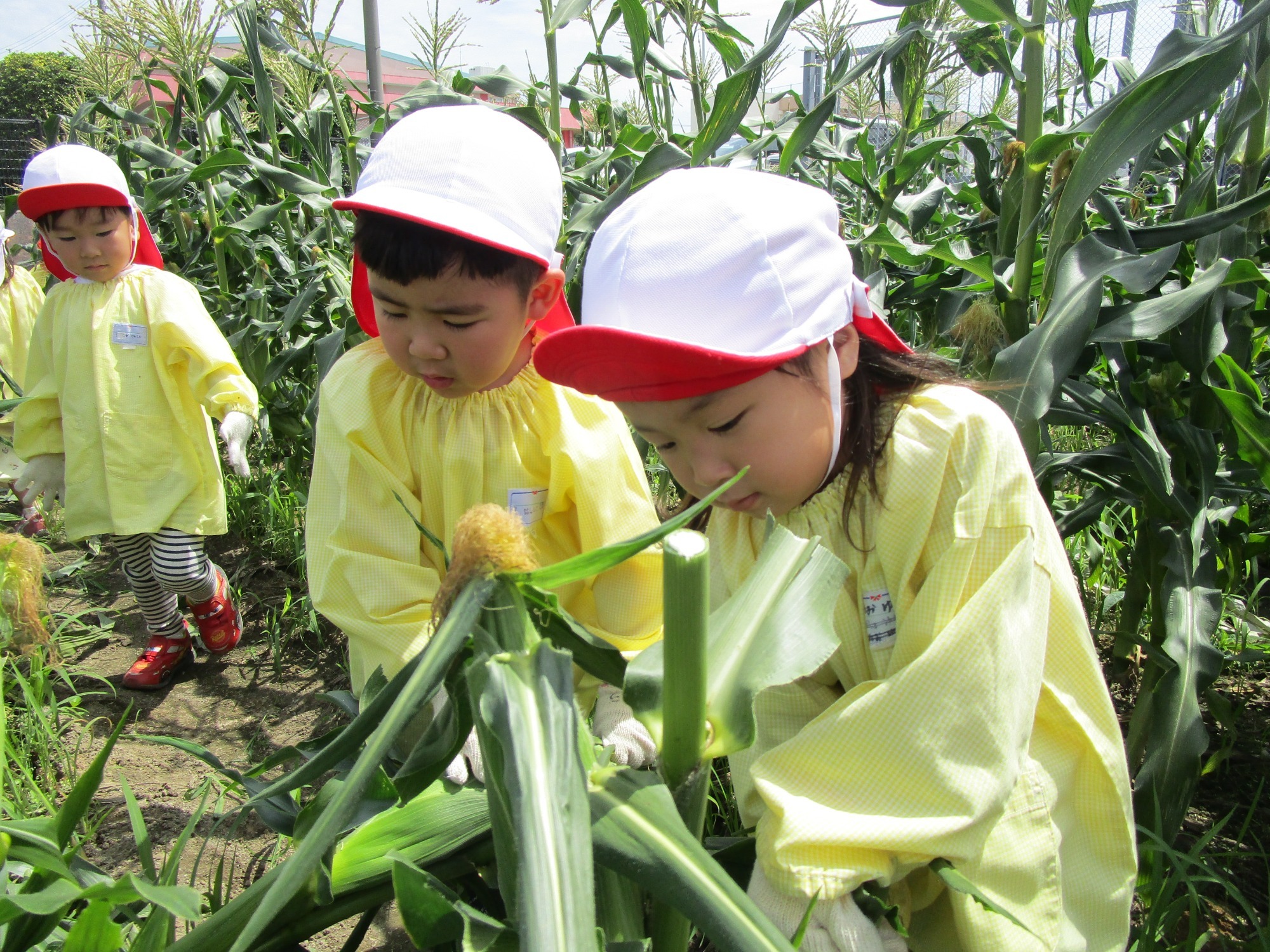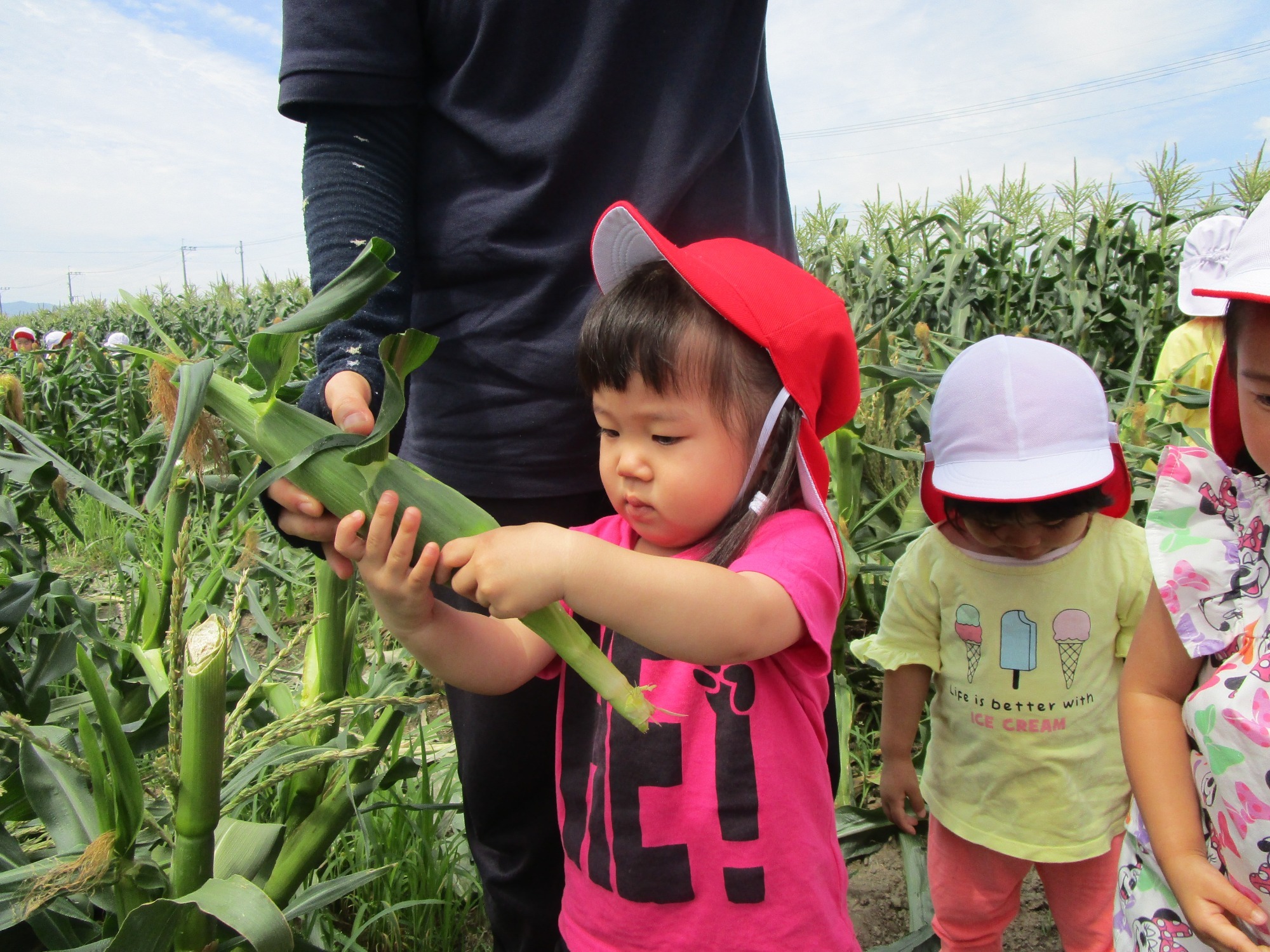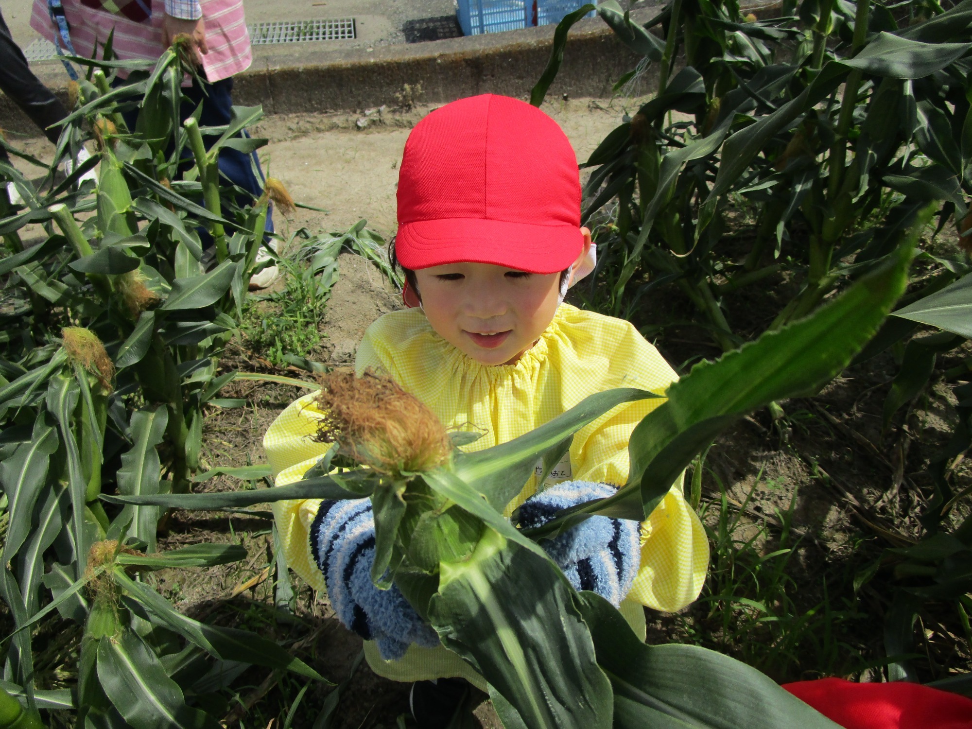 6月6日(金)にはなぐみ、ほしぐみ、つきぐみでトウモロコシ狩りを行いました。