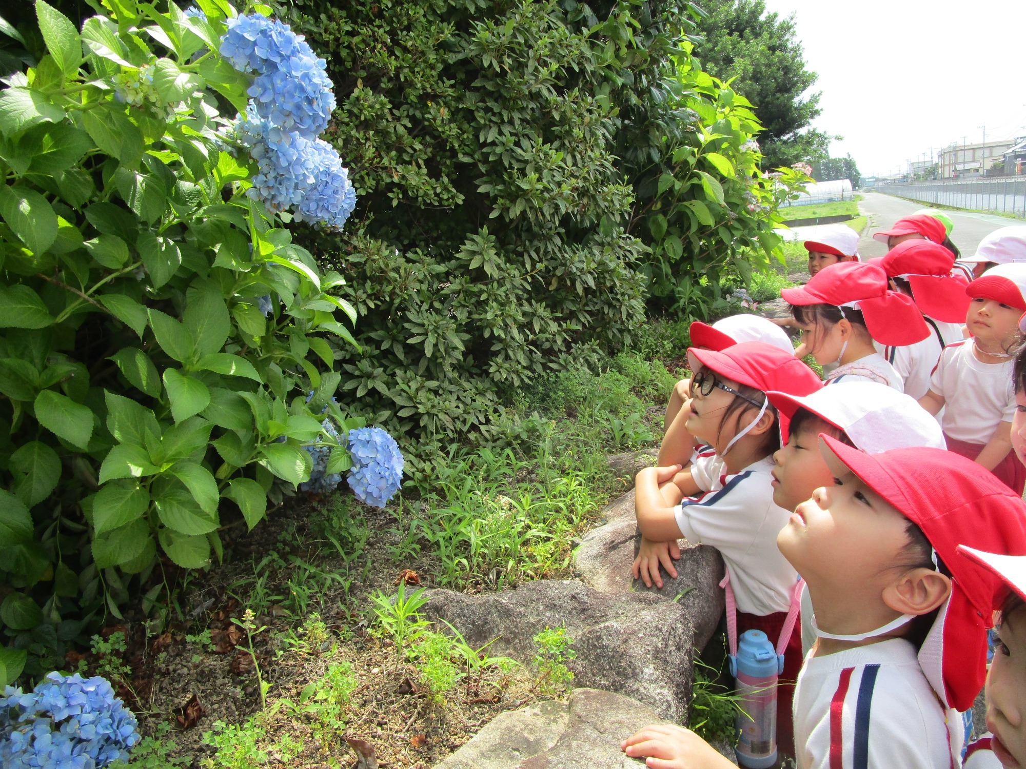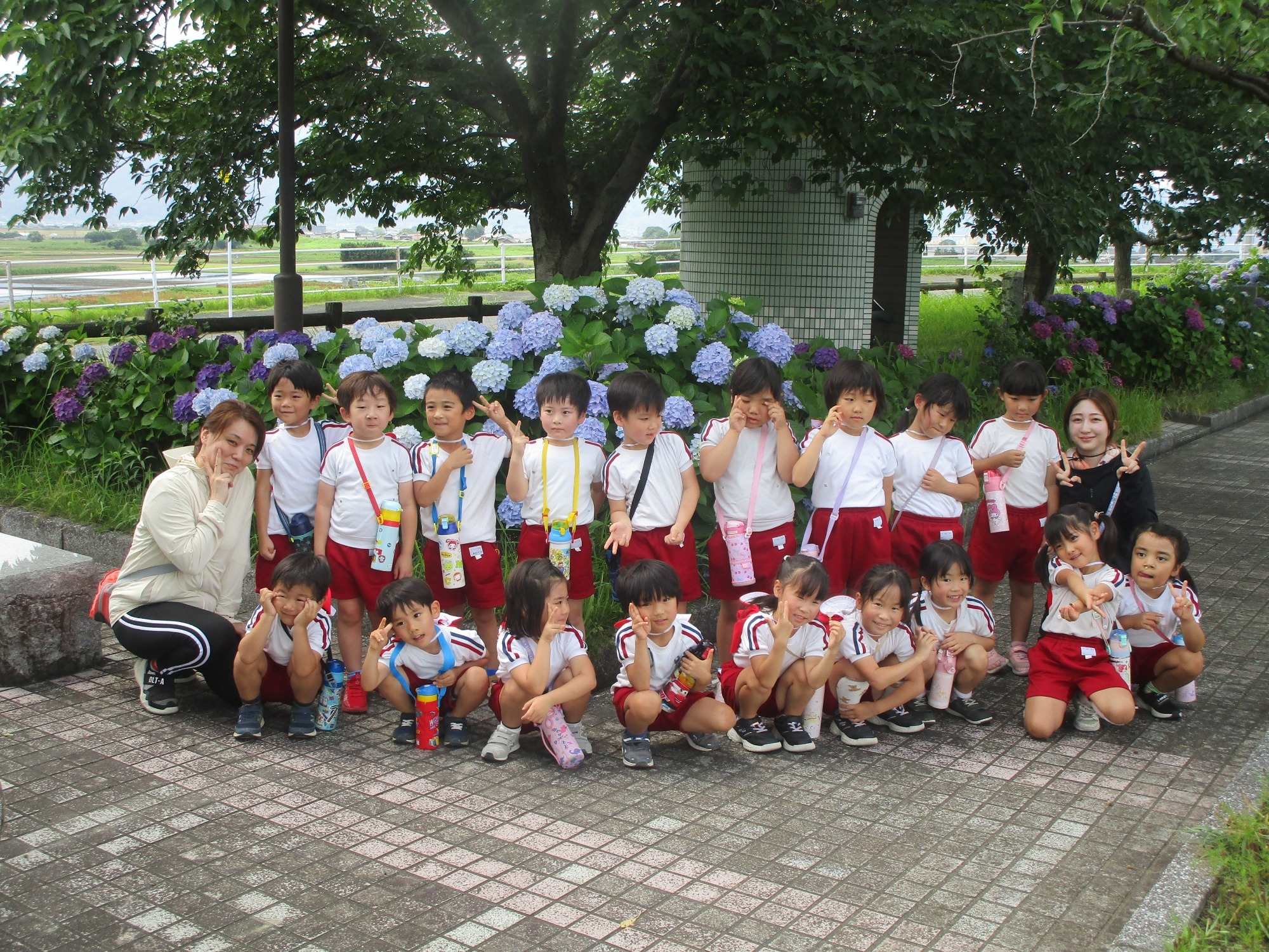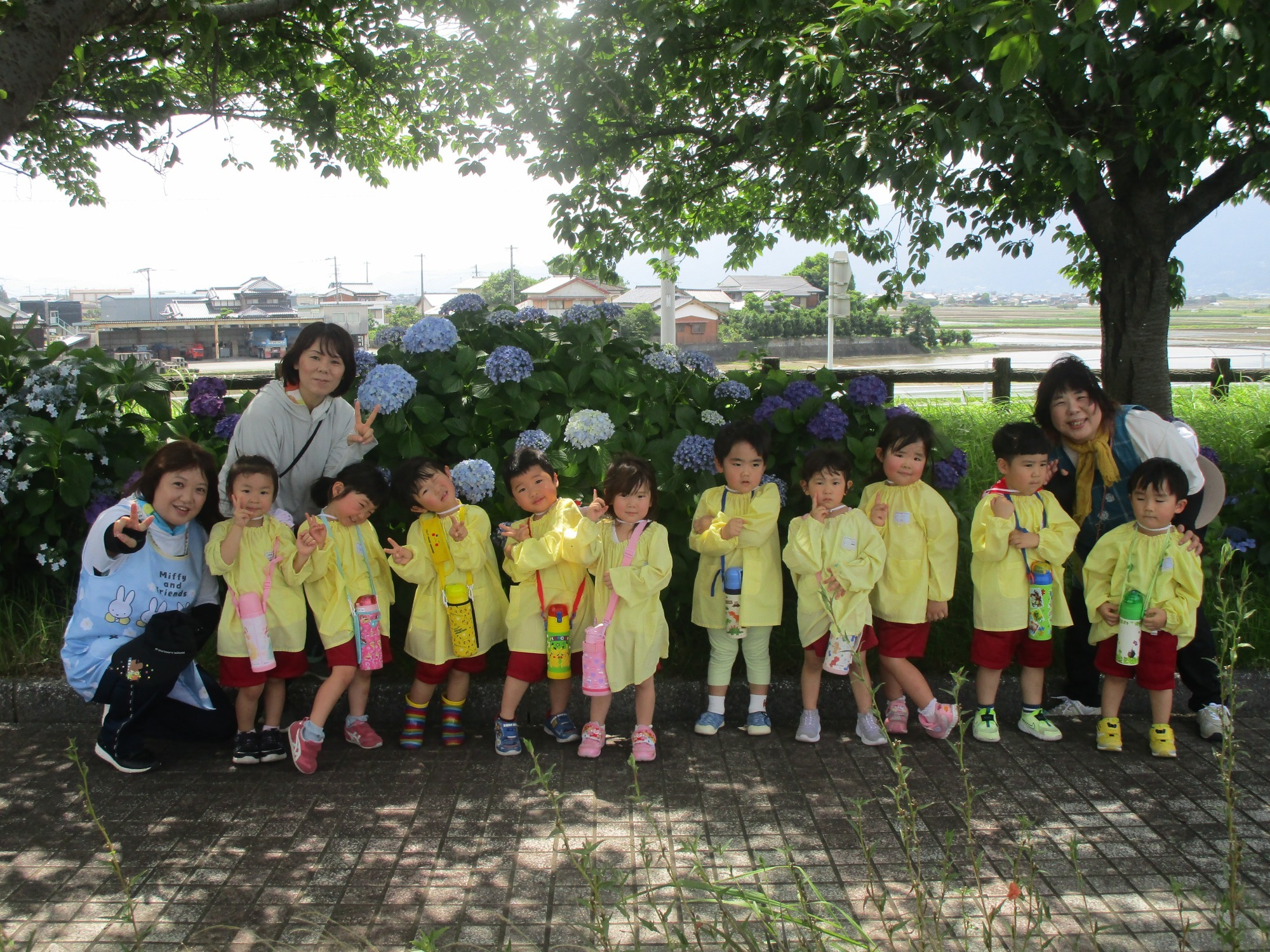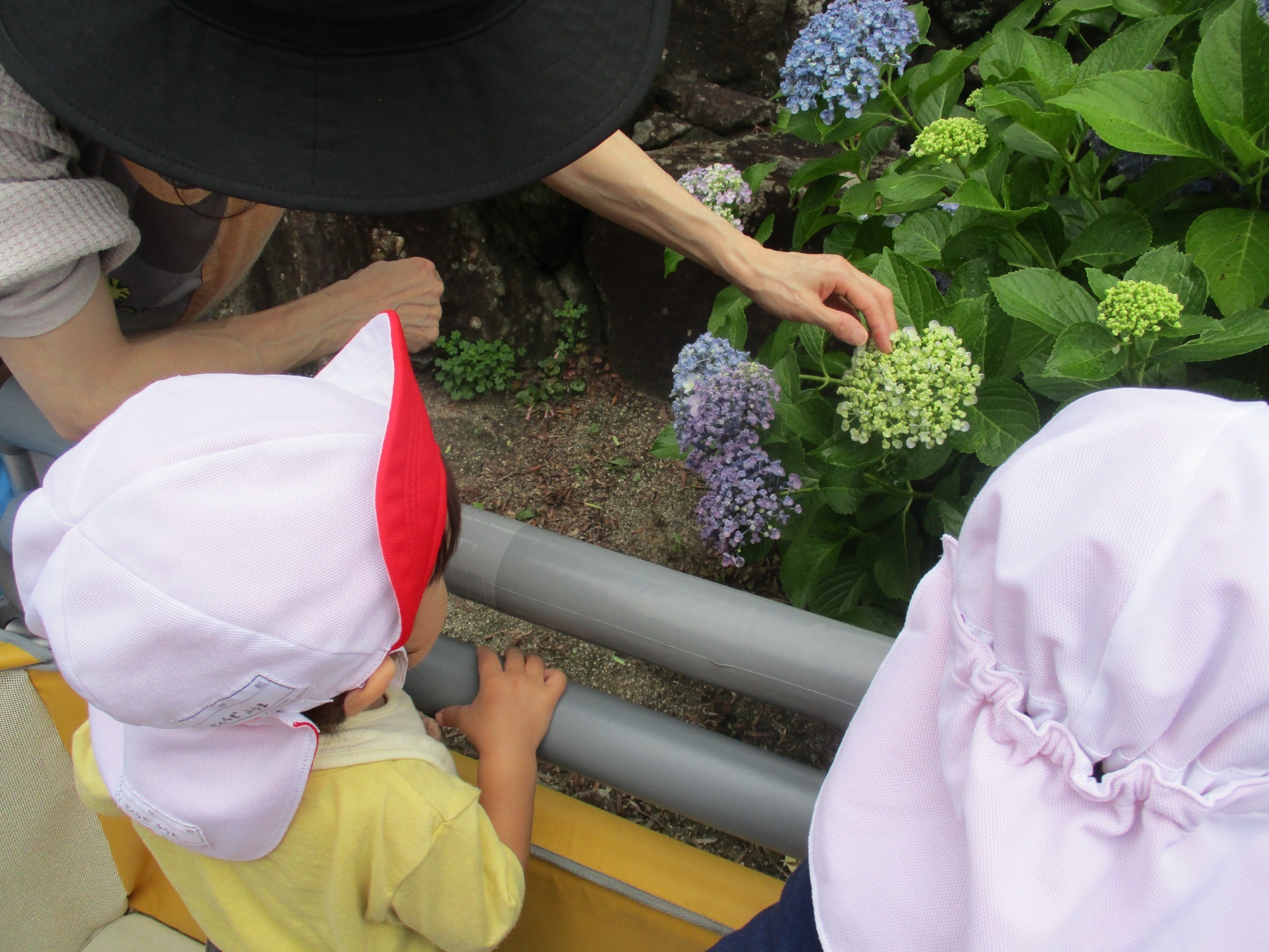雨の日が多い季節になりましたが、晴れ間を見つけてみんなでお散歩や戸外遊びを楽しんでいます。