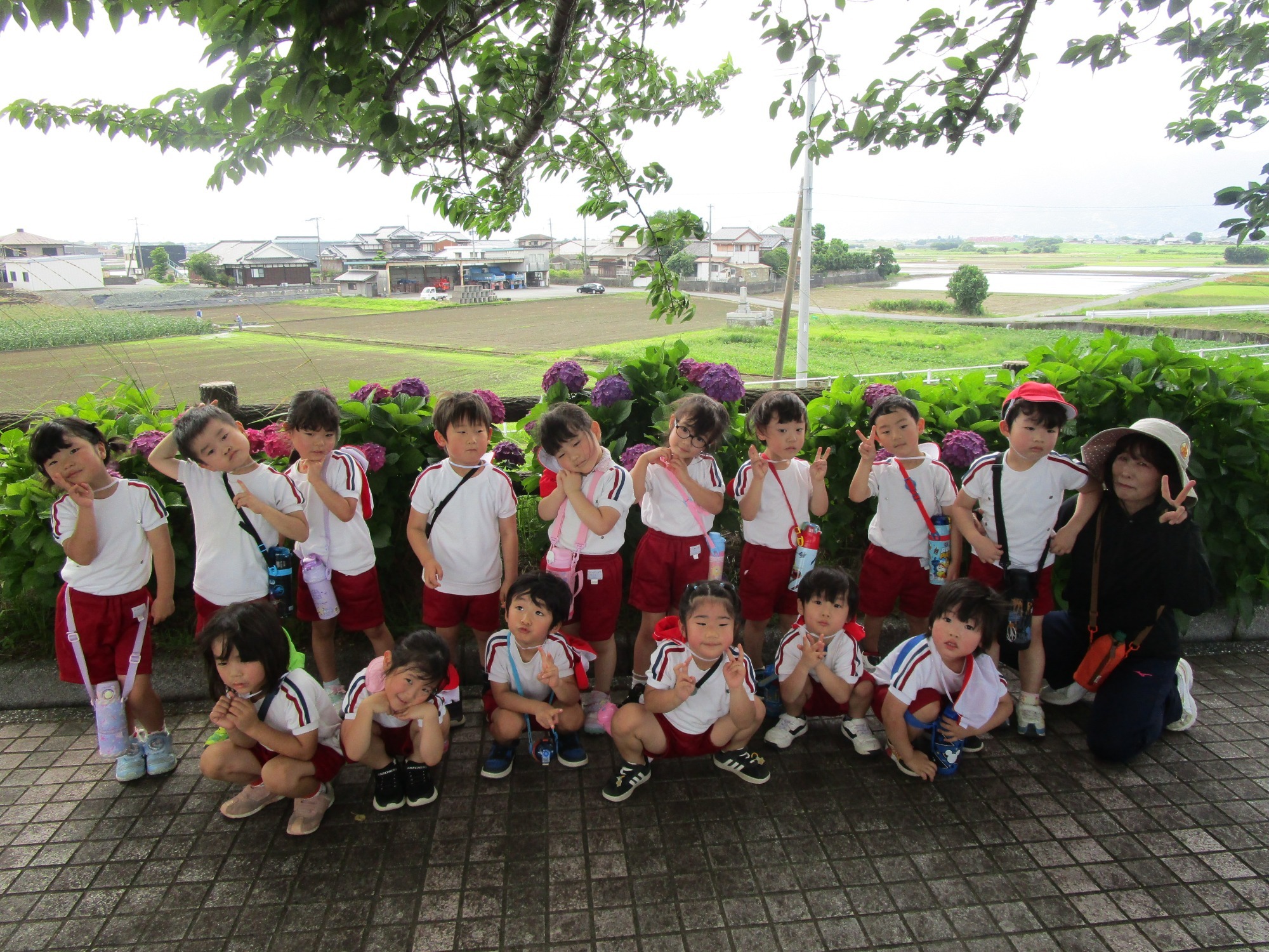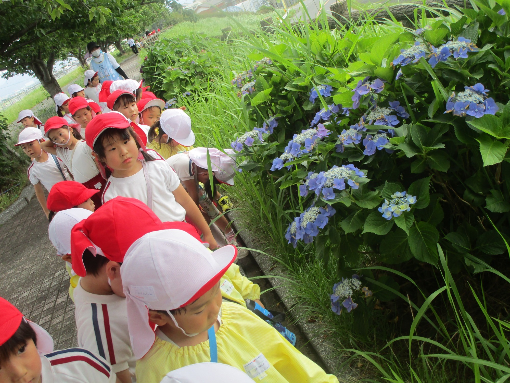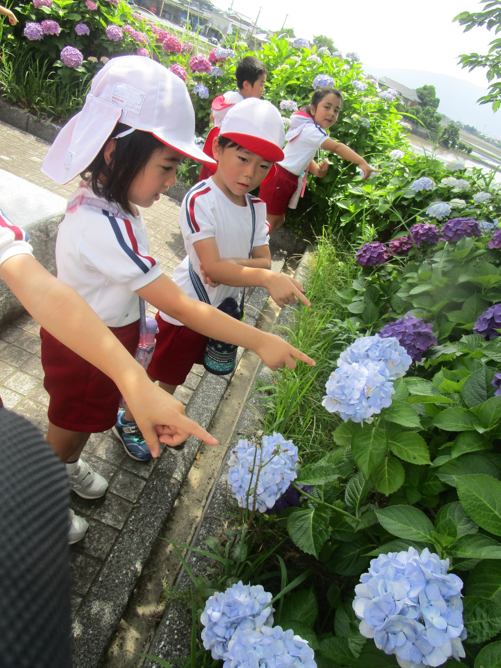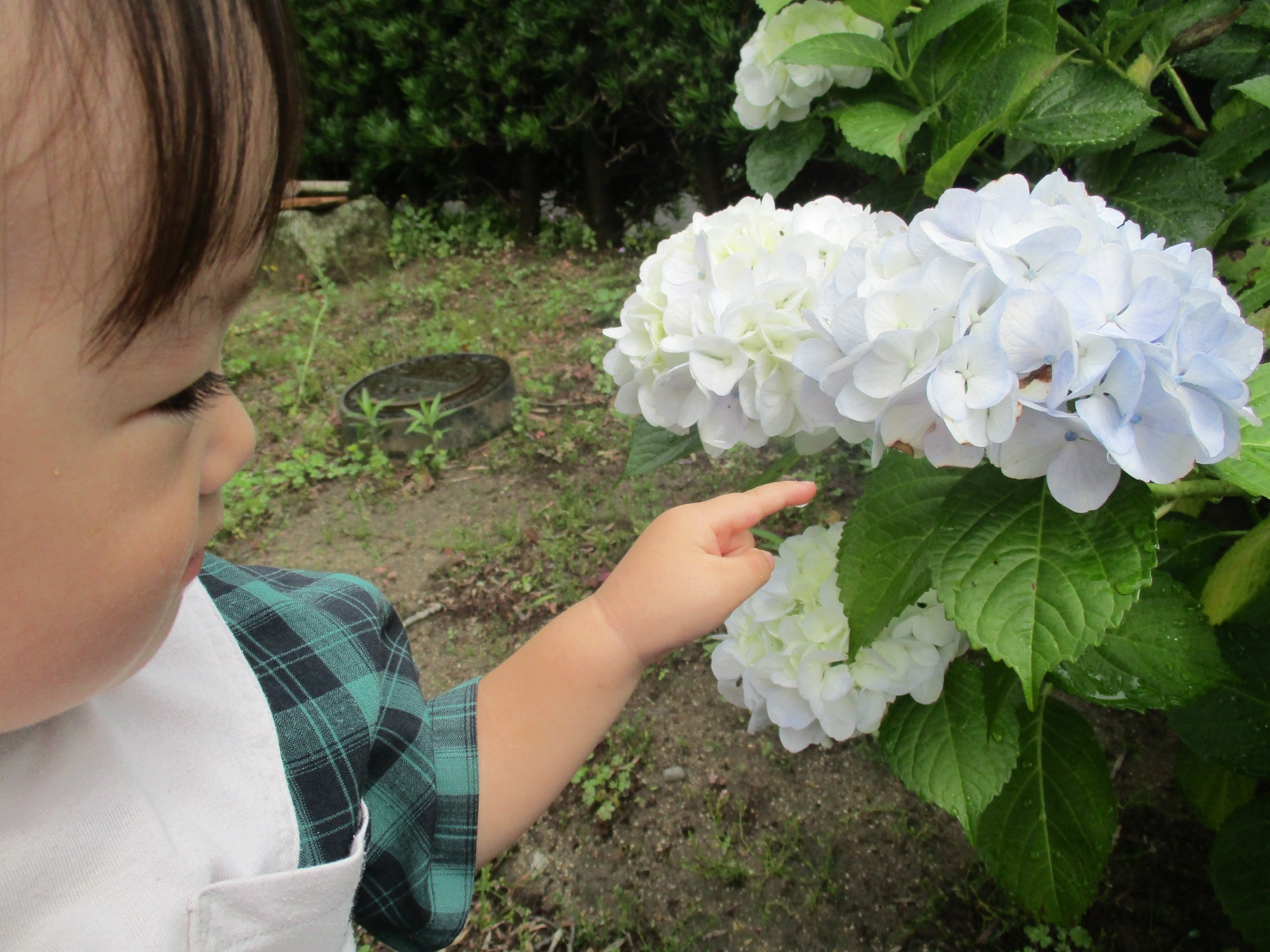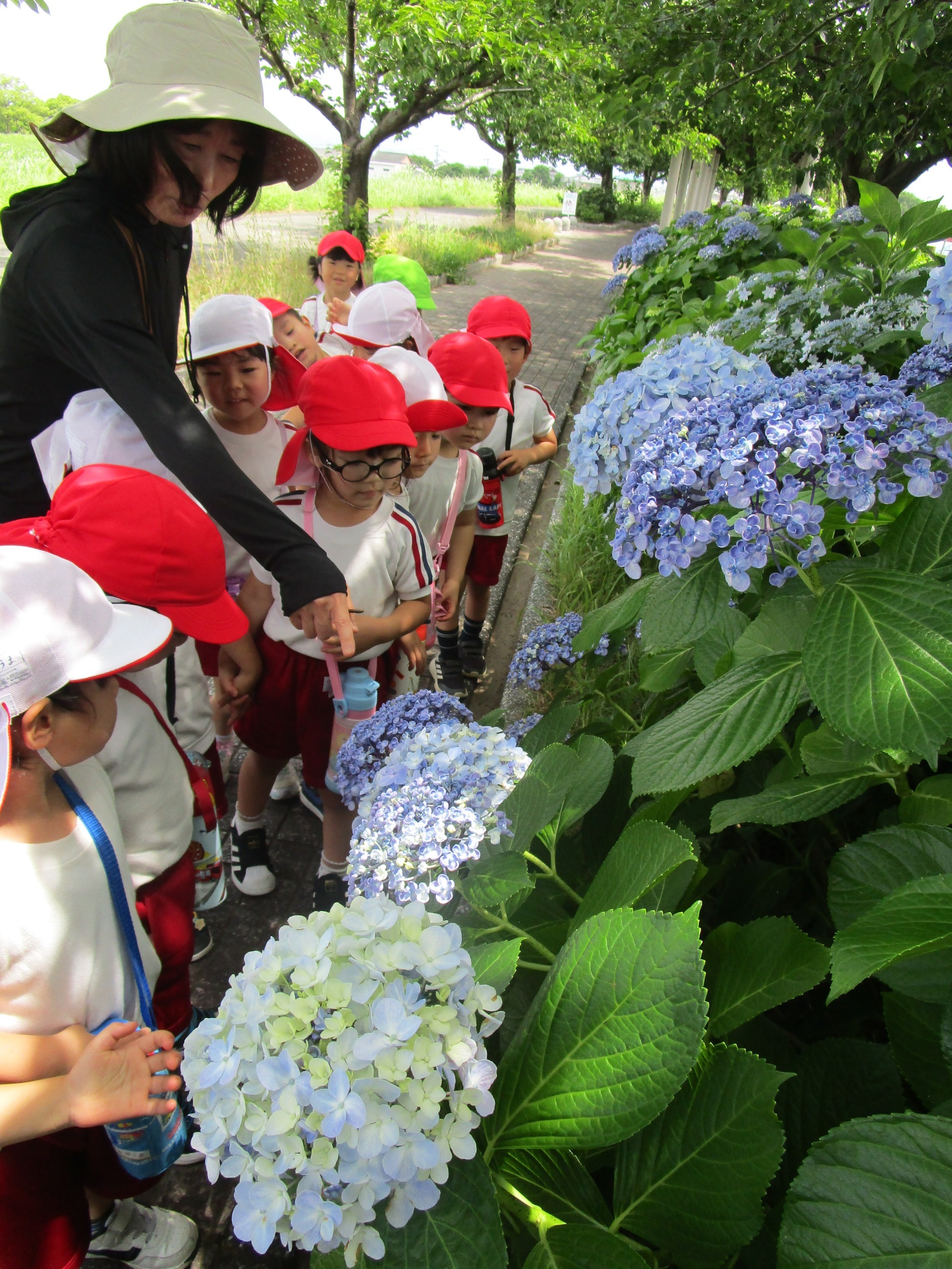 雨の日が多い季節になりましたが、晴れ間を見つけてみんなでお散歩や戸外遊びを楽しんでいます。