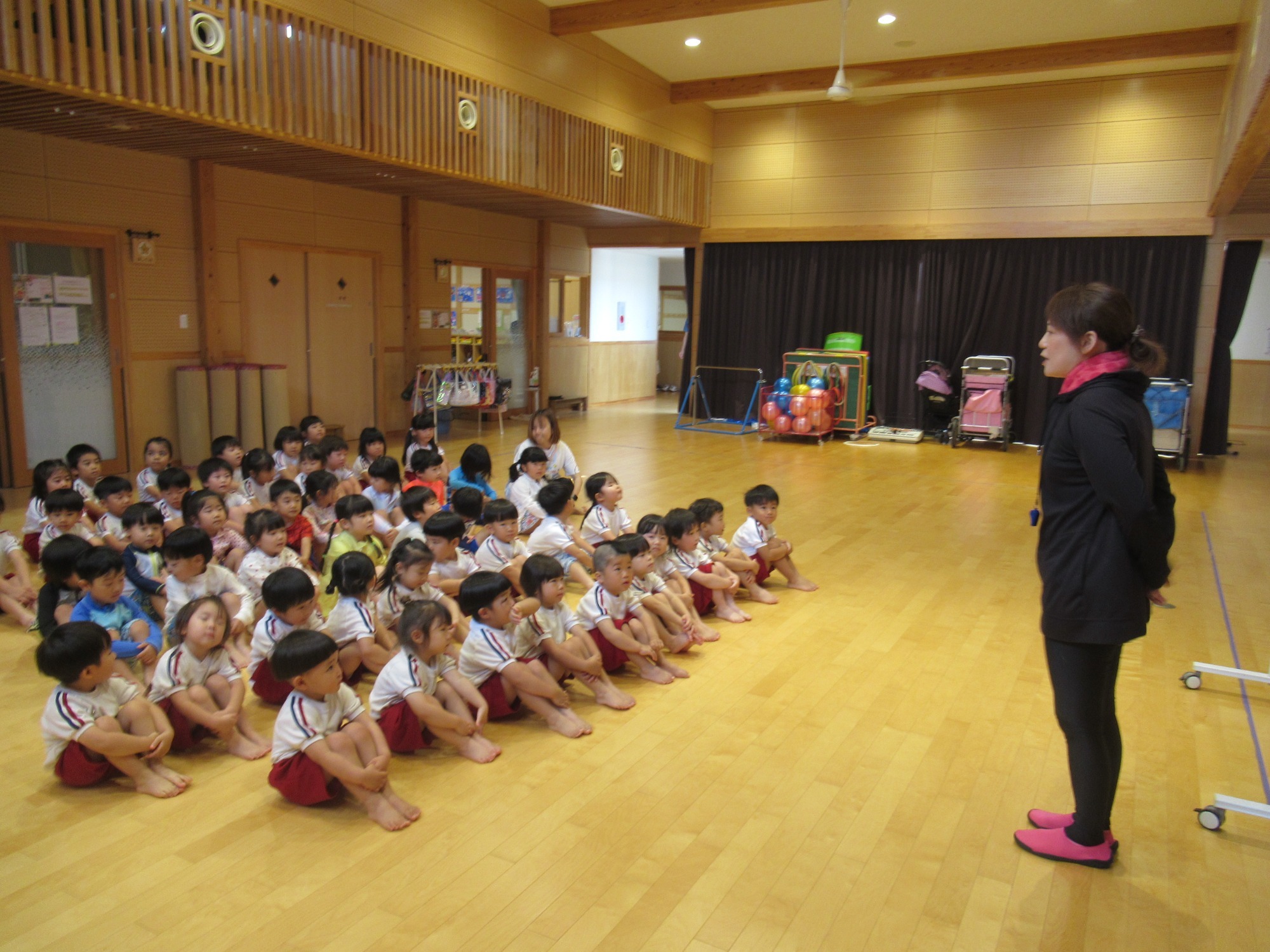 プールに入る前にひろばで、プールのお約束を確認しました。