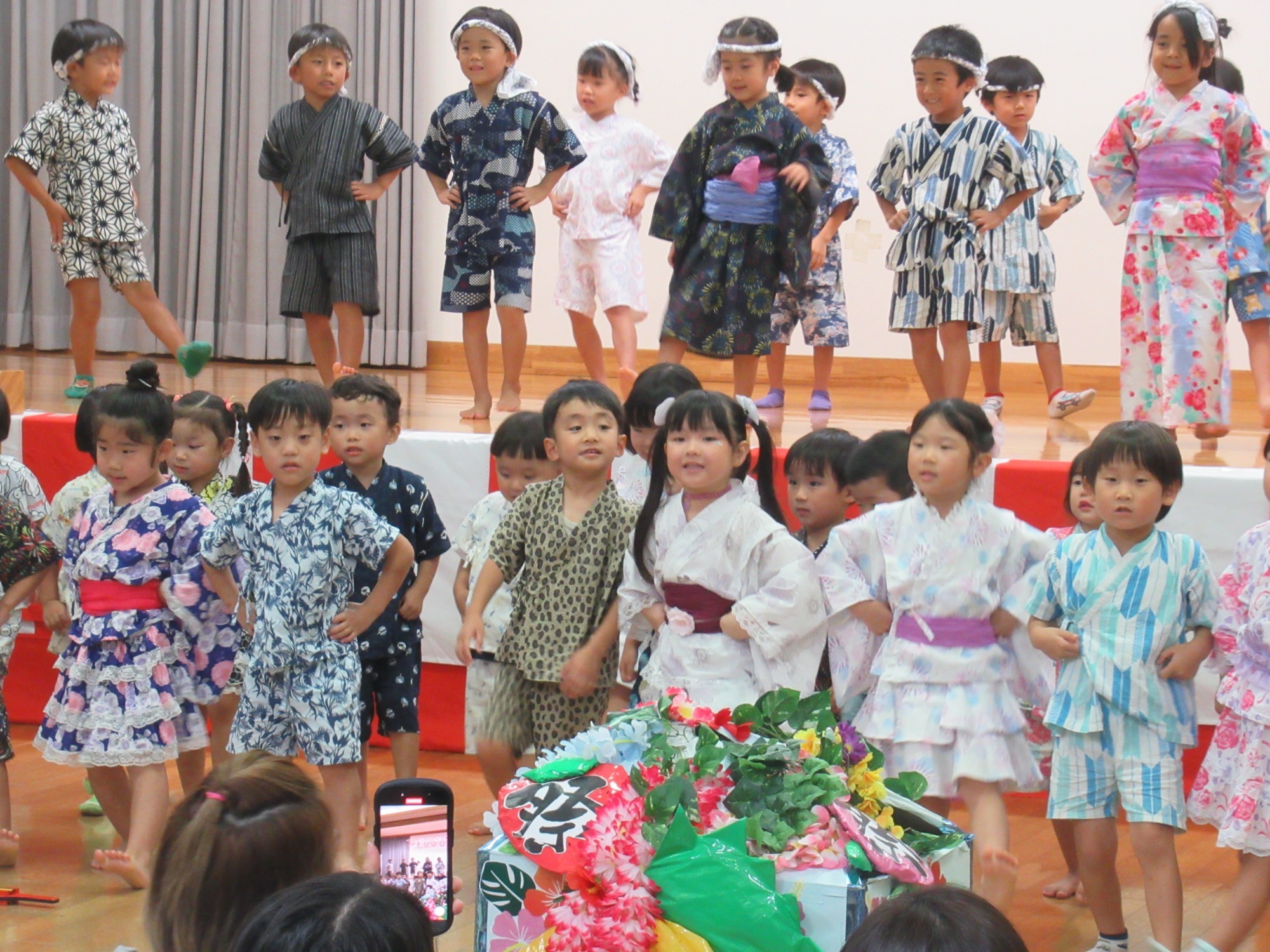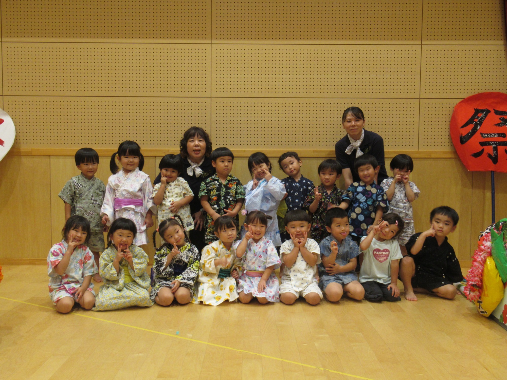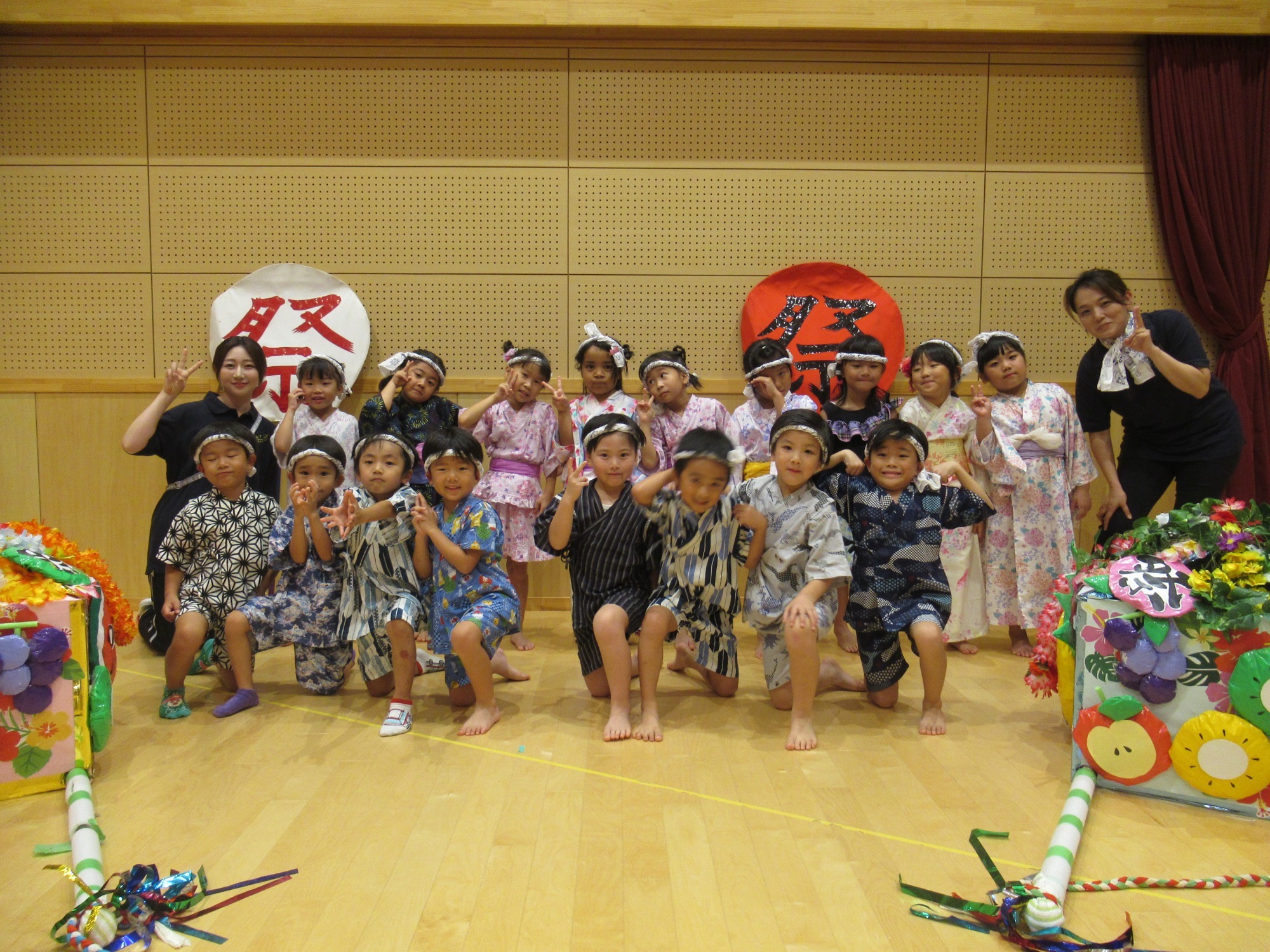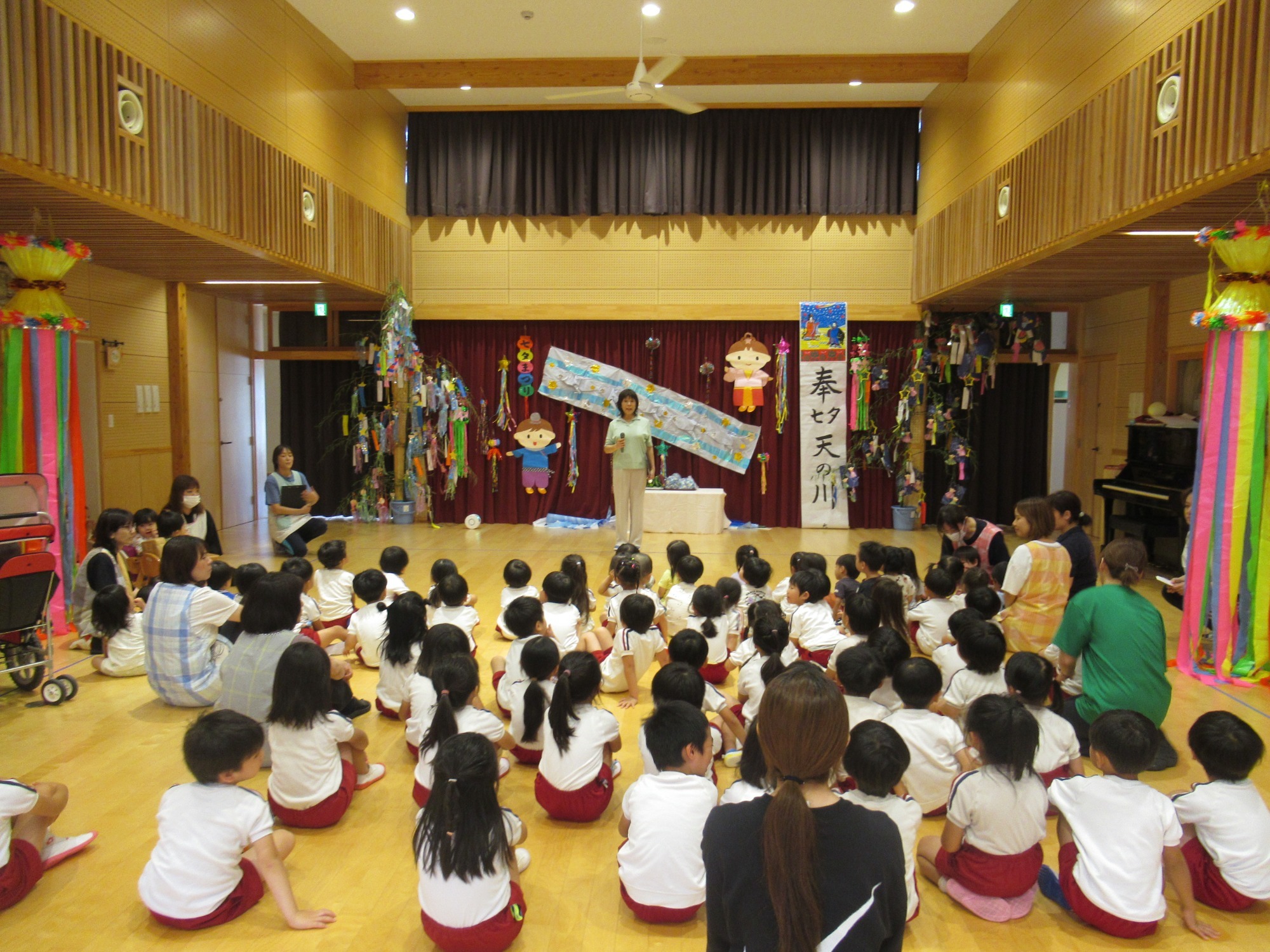 七夕祭りでは七夕の由来の話を聞いたり歌を歌ったりしました。今年も彦星と織姫が会いに来てくれ大盛り上がり☆一緒に写真を記念撮影もしました!