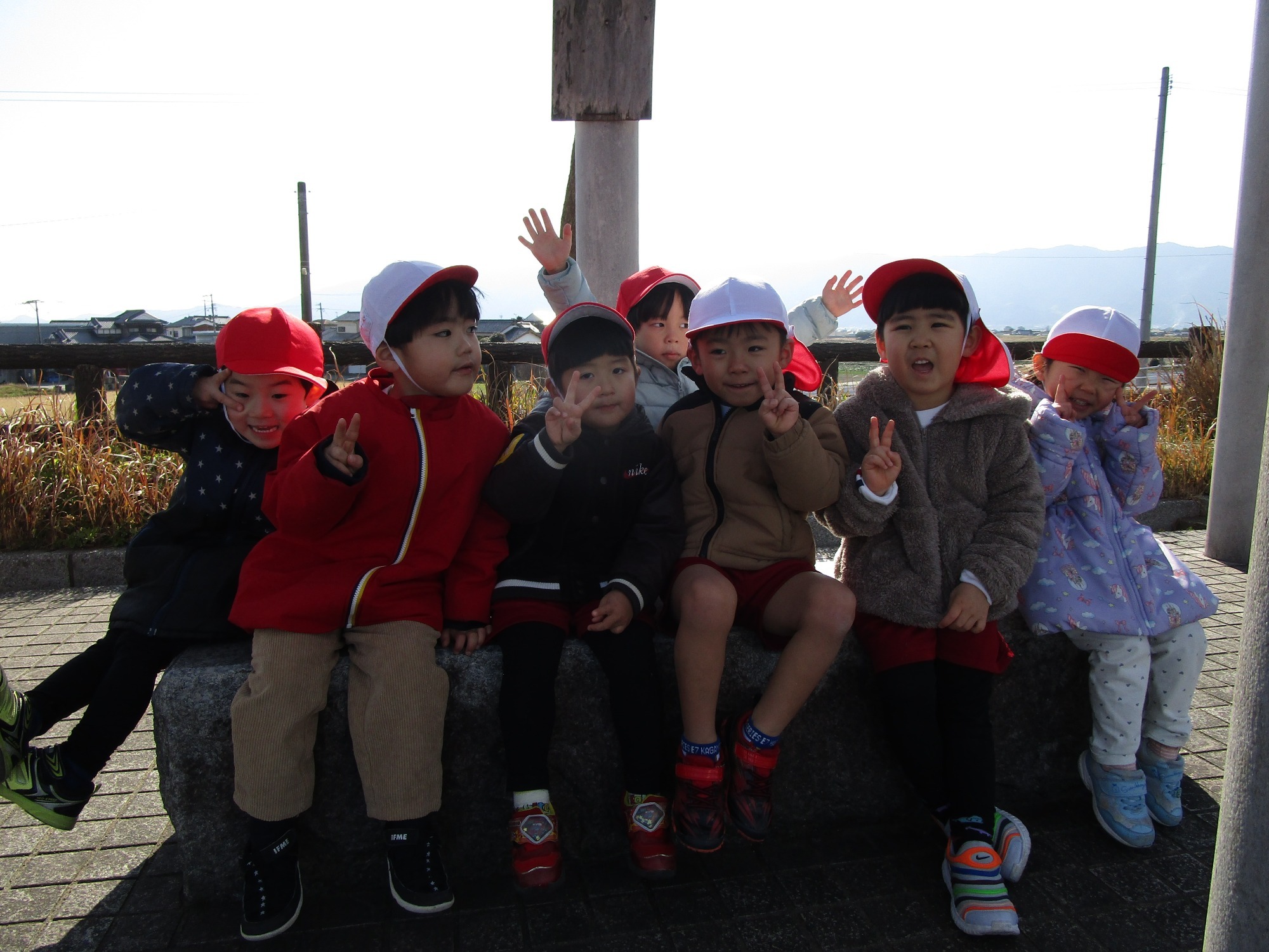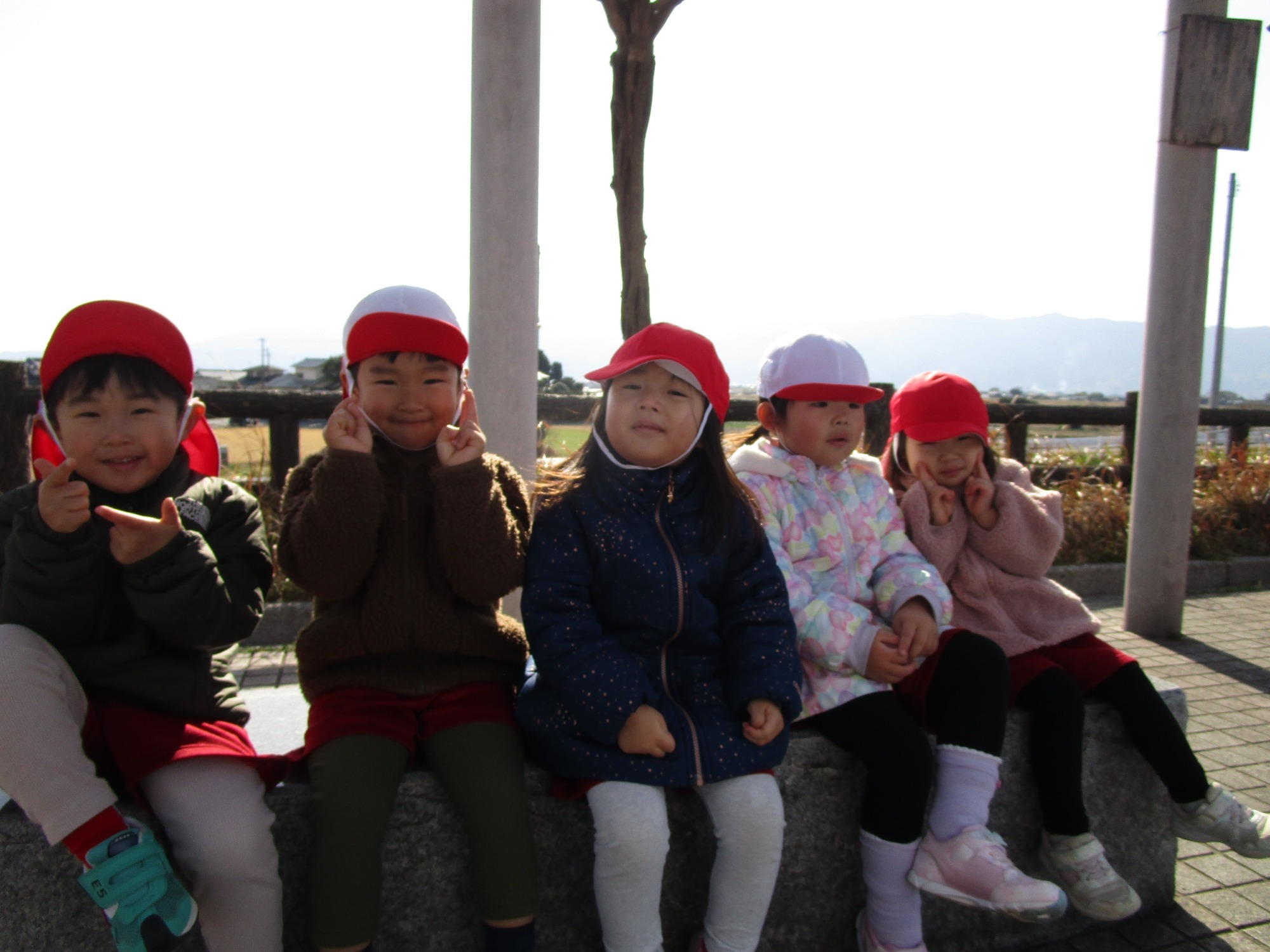 遠足の数日前から天気予報は曇り、雨のマーク・・・職員一同前日までドキドキしていました。「晴れますように」とみんなでお祈りしていたら、当日はお日様も顔を出して絶好の遠足日和となりました!みんなの願いがお空に届いたのかもしれませんね。