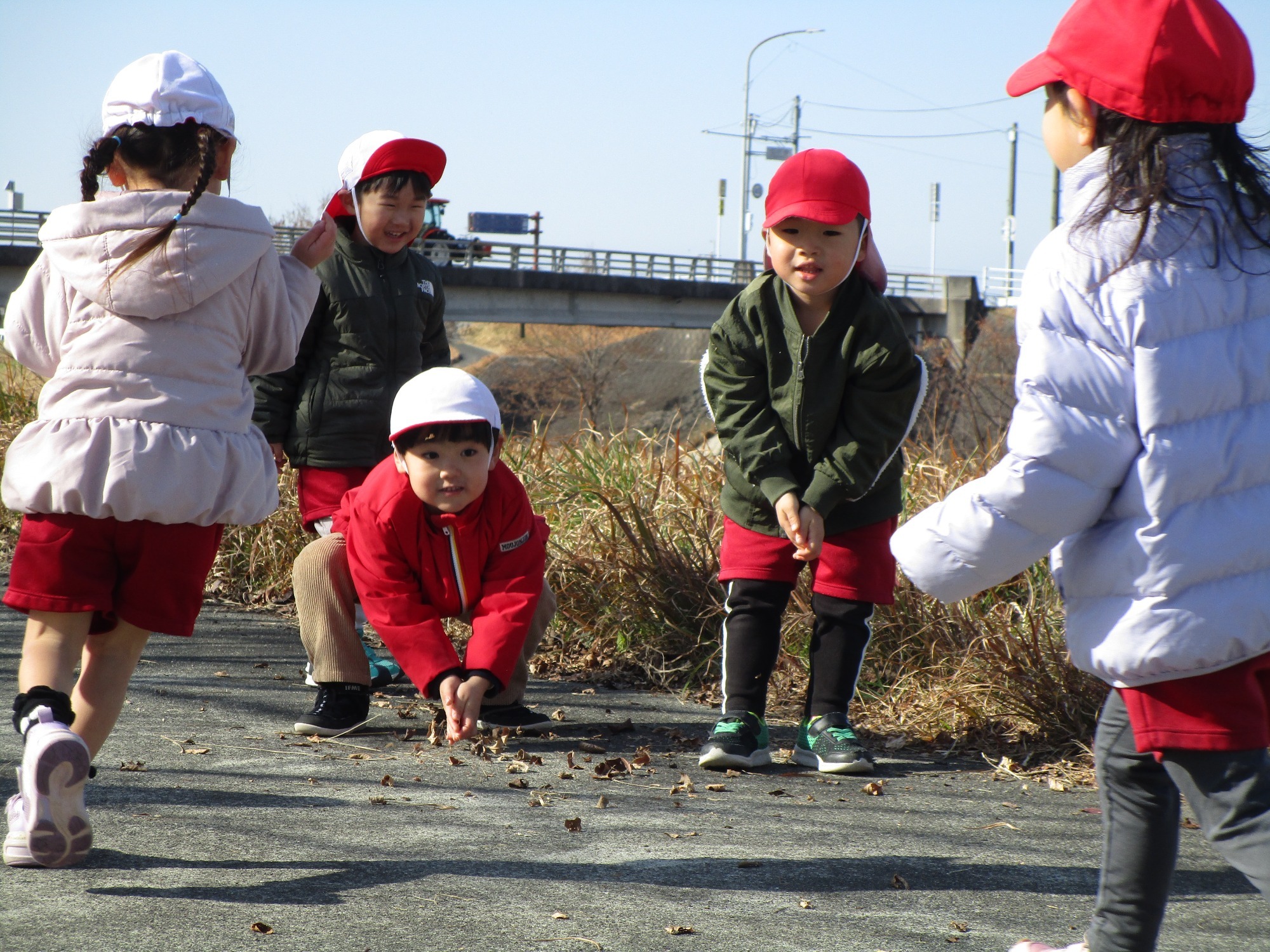 他のクラスのお友だちは保育園周辺や菅野神社、江戸橋に散歩へ出かけました。