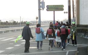 校区ごとに、校区センター・学校と連携しながら登下校中の小学生の見守り活動を行っています。1年を通して「できる人が・できる時に・できる範囲で」をモットーに、地域の目で子どもたちを見守っています。